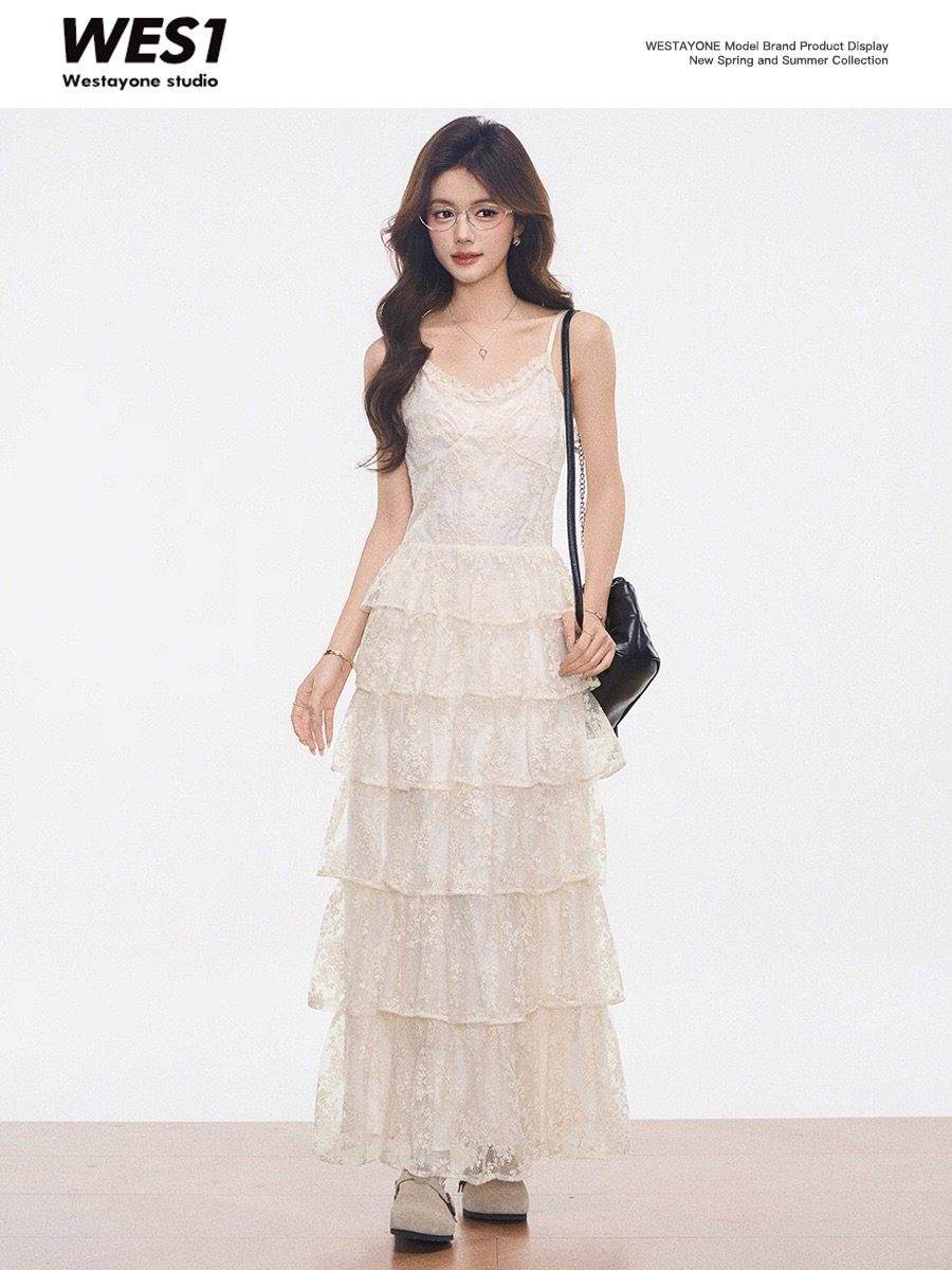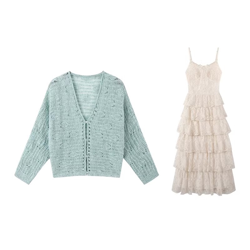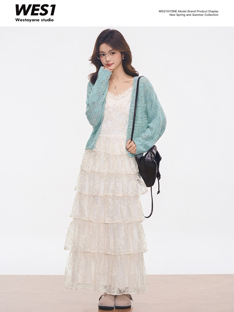 2026 새로운 레이스 도트 무늬 케이크 치마 세트 봄 여름 투피스 세트 롱 스커트 작은 대중 튀김 거리 고급 센스 여성