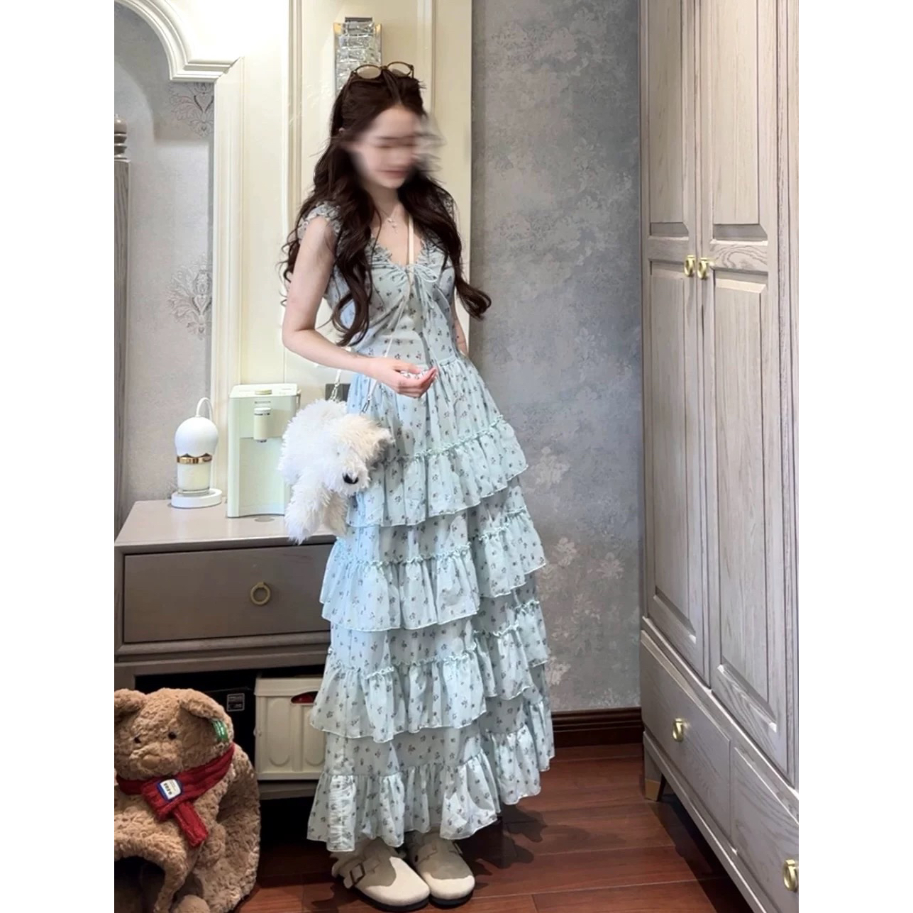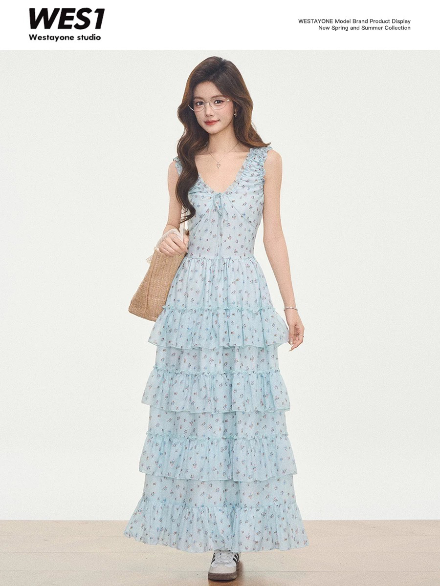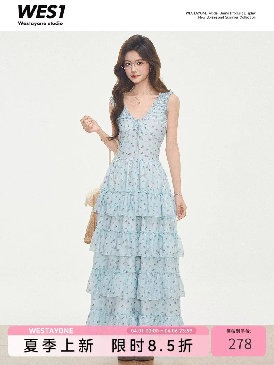 4.3 신제품 westayone 박하 녹색 꽃무늬 여성 드레스 여름 2026 새로운 작은 키 롱 스커트