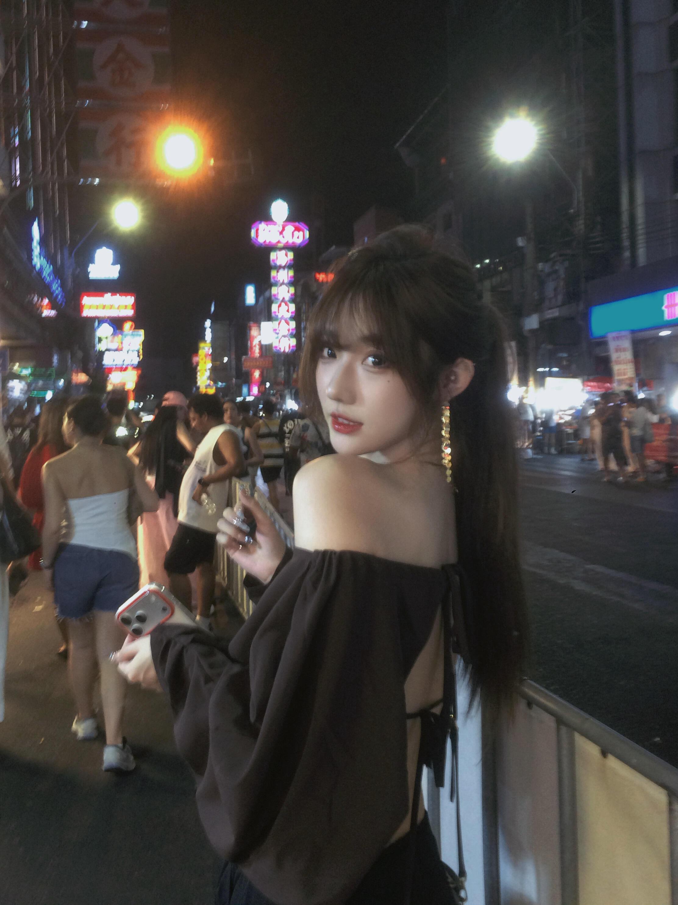 브라운 한 단어 오프숄더 긴팔 맨위 여성 작은 대중 심장 기계 핫걸 품격 셔츠