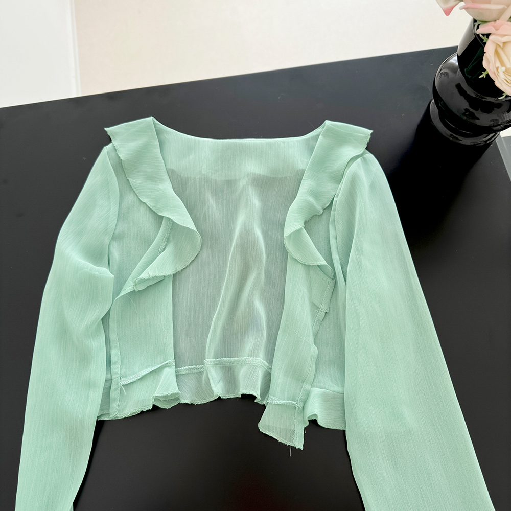 creamysweet04 23 켜기 새로운 Jiaojiao 센스 흔들다 칼라 주간 실크 양모 프릴 티셔츠 맨위
