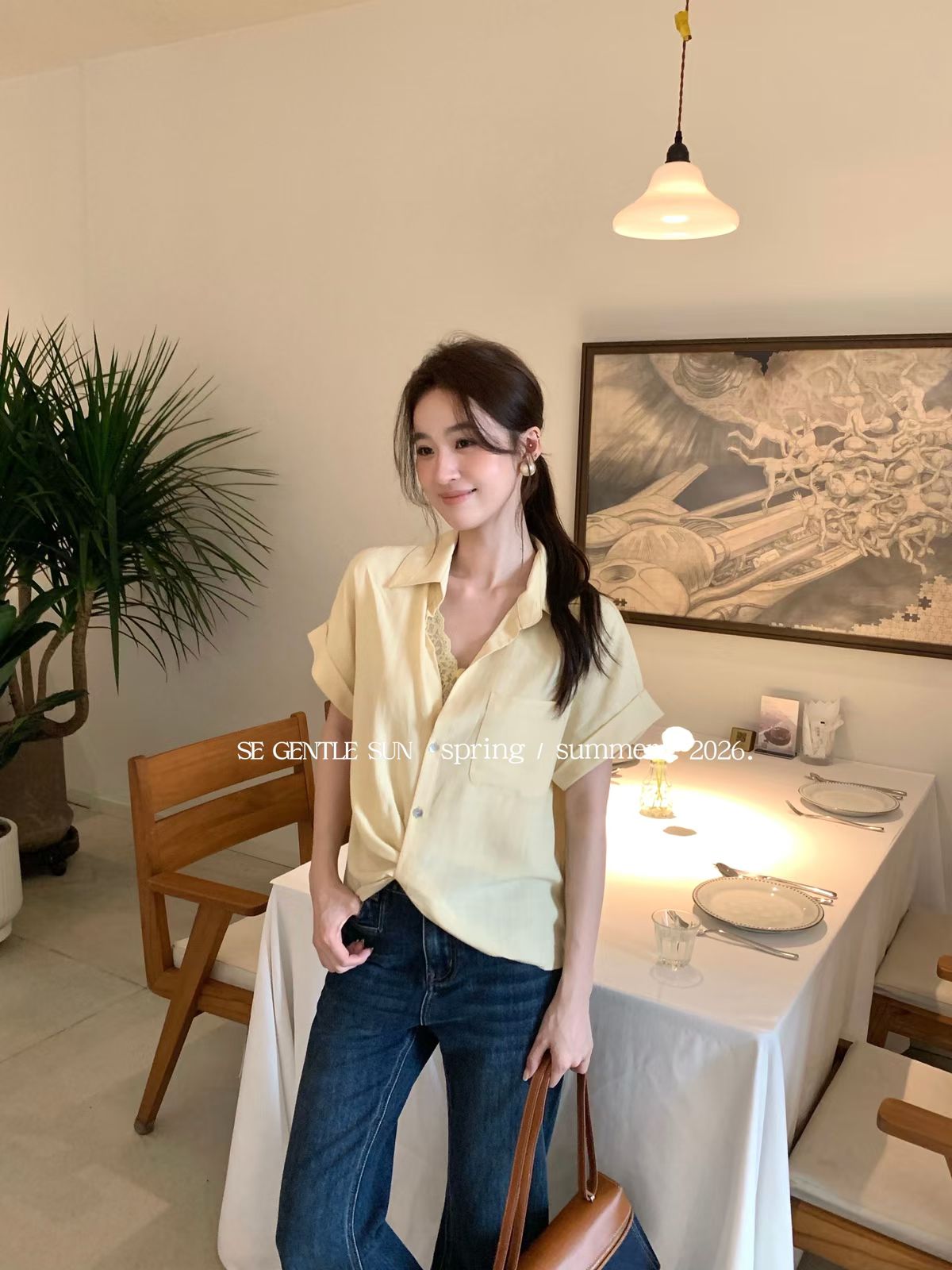 26 여름 켜기 새로운 무거운 작업 레이스 디자인 센스 작은 셔츠 슬립 플리츠 조끼