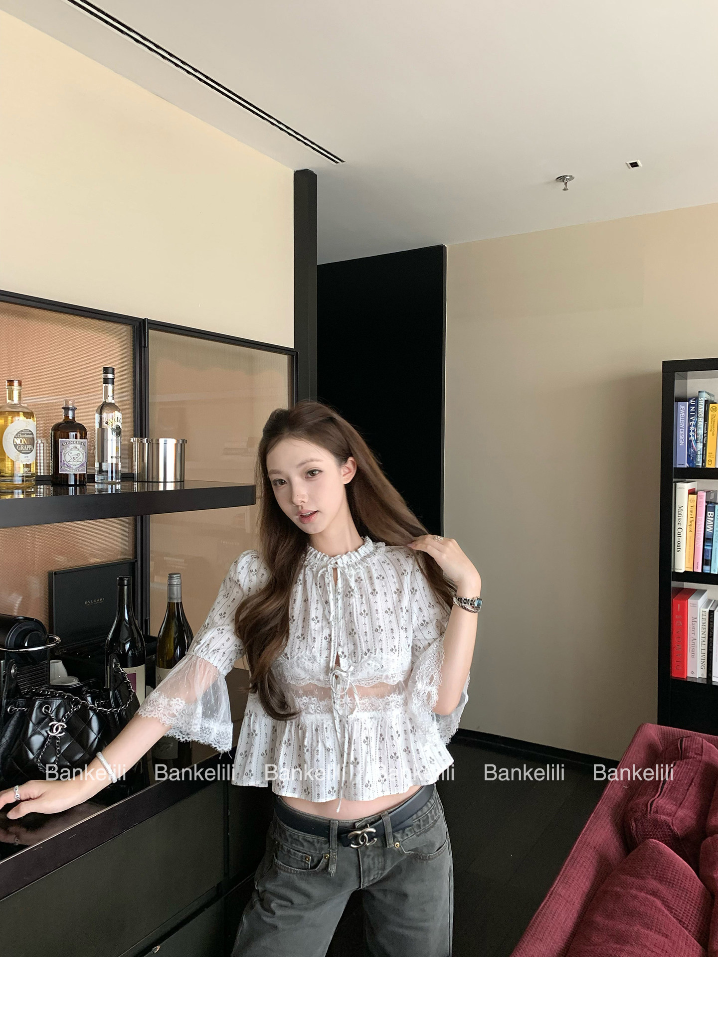 밤나무 코코아 bankelili 천 새싹 뮤즈 라이 경기 서울 프랑스식 프릴 오프숄더 맨위 여성 봄 여름