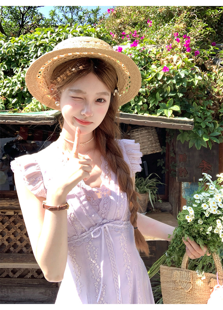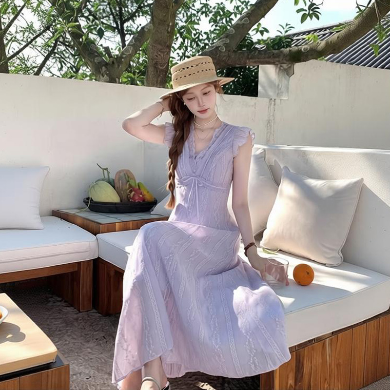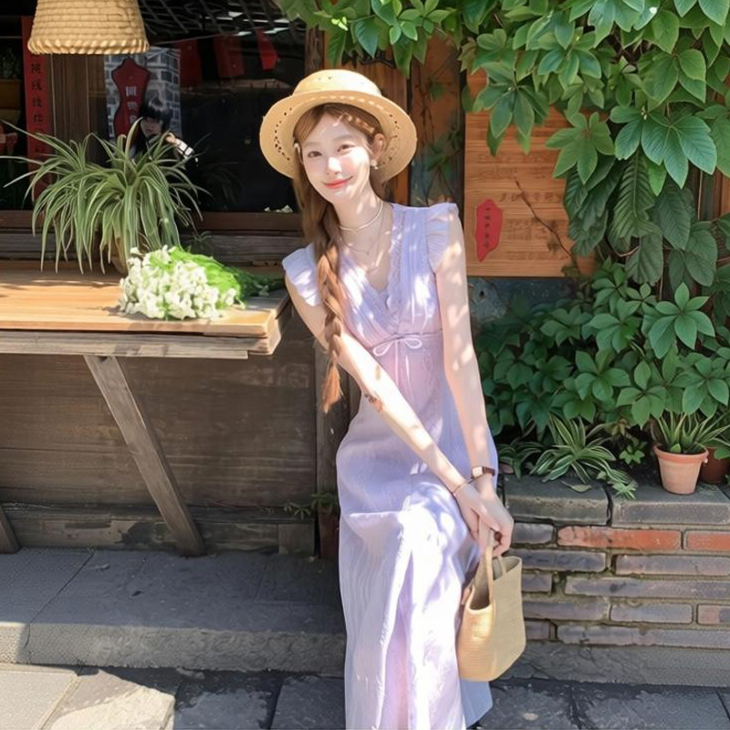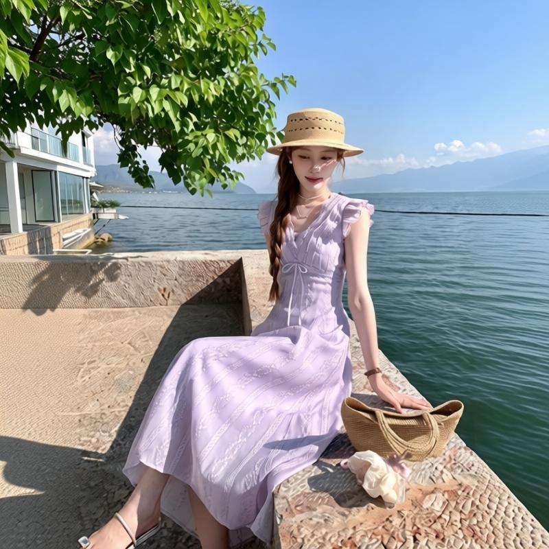 달콤함 슬립 여성 드레스 여름 고급 센스 부드러운 바람 첫사랑 공주 케이크 드레스 허리 수축 퍼프 길다 치마