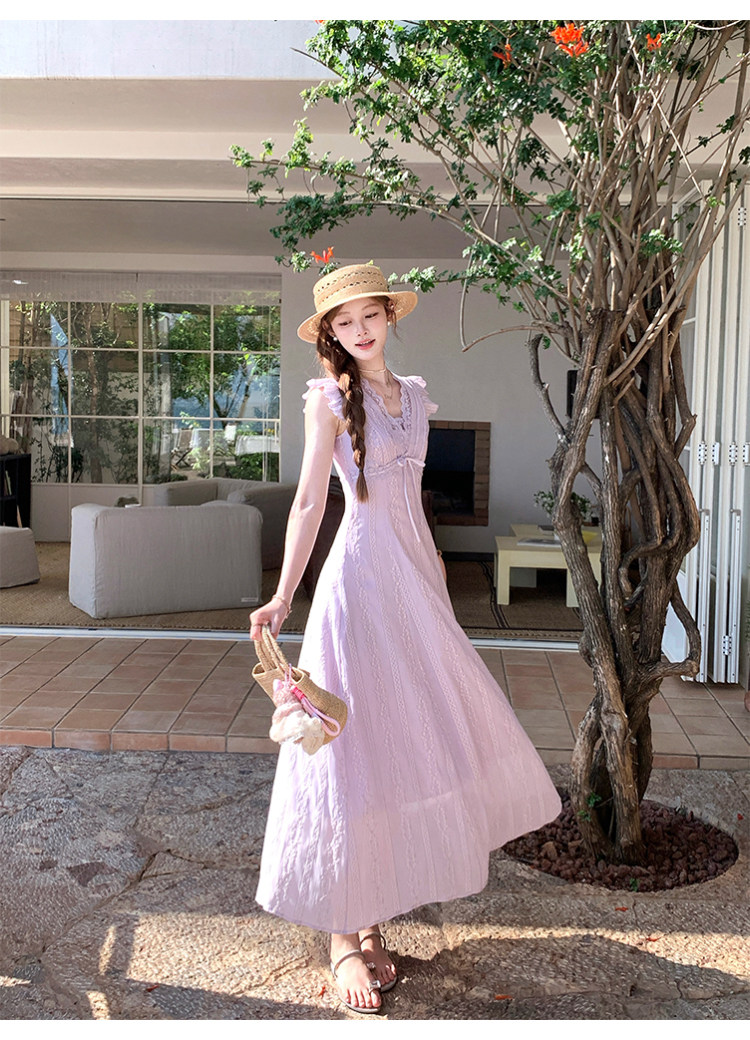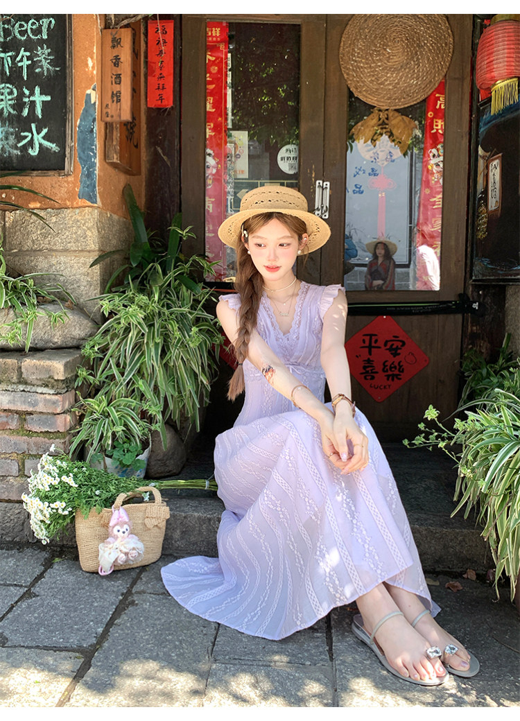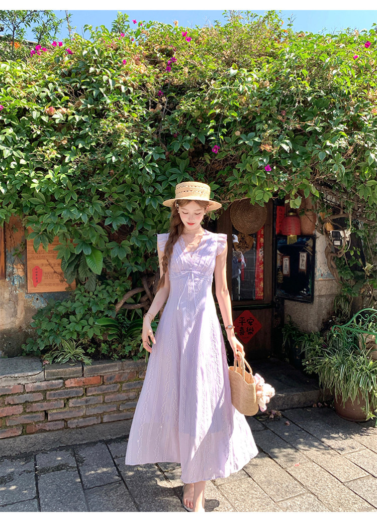 cloudsweet 흰 구름 달콤한 Breeze 향수 품격 행침 목 쉬폰 여성 드레스 플리츠 스커트 민소매 롱 스커트