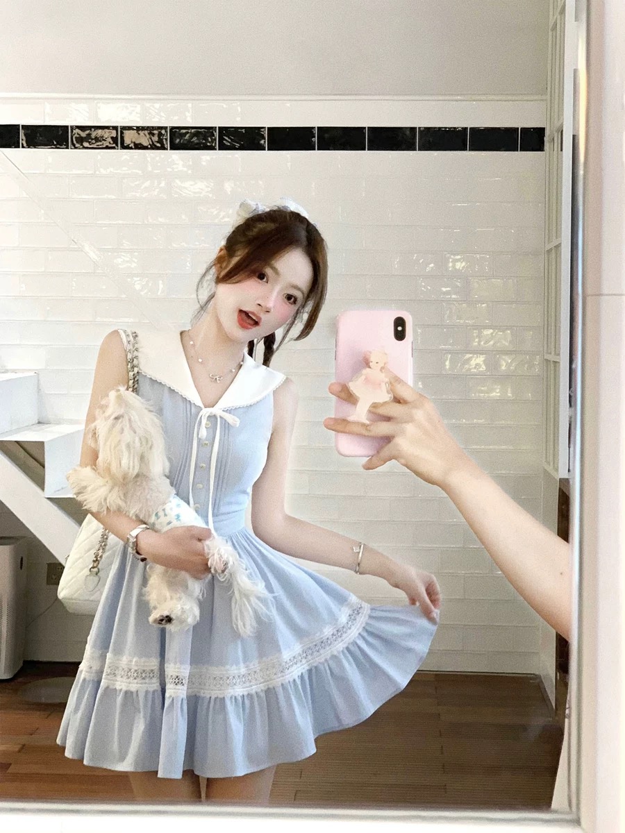 디자인 센스 체크무늬 민소매 조끼 여성 드레스 여름 2026 새로운 작은 키 캐주얼 슬림해 보이는 품격 치마