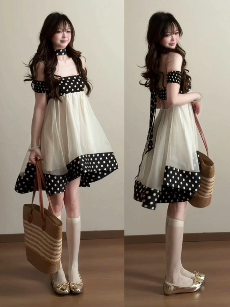 프랑스식 긴팔 여성 셔츠 2026 새로운 화이트 도트 무늬 리본 품격 맨위 이른 봄 분위기 센스 착용 가져 가라. 세트