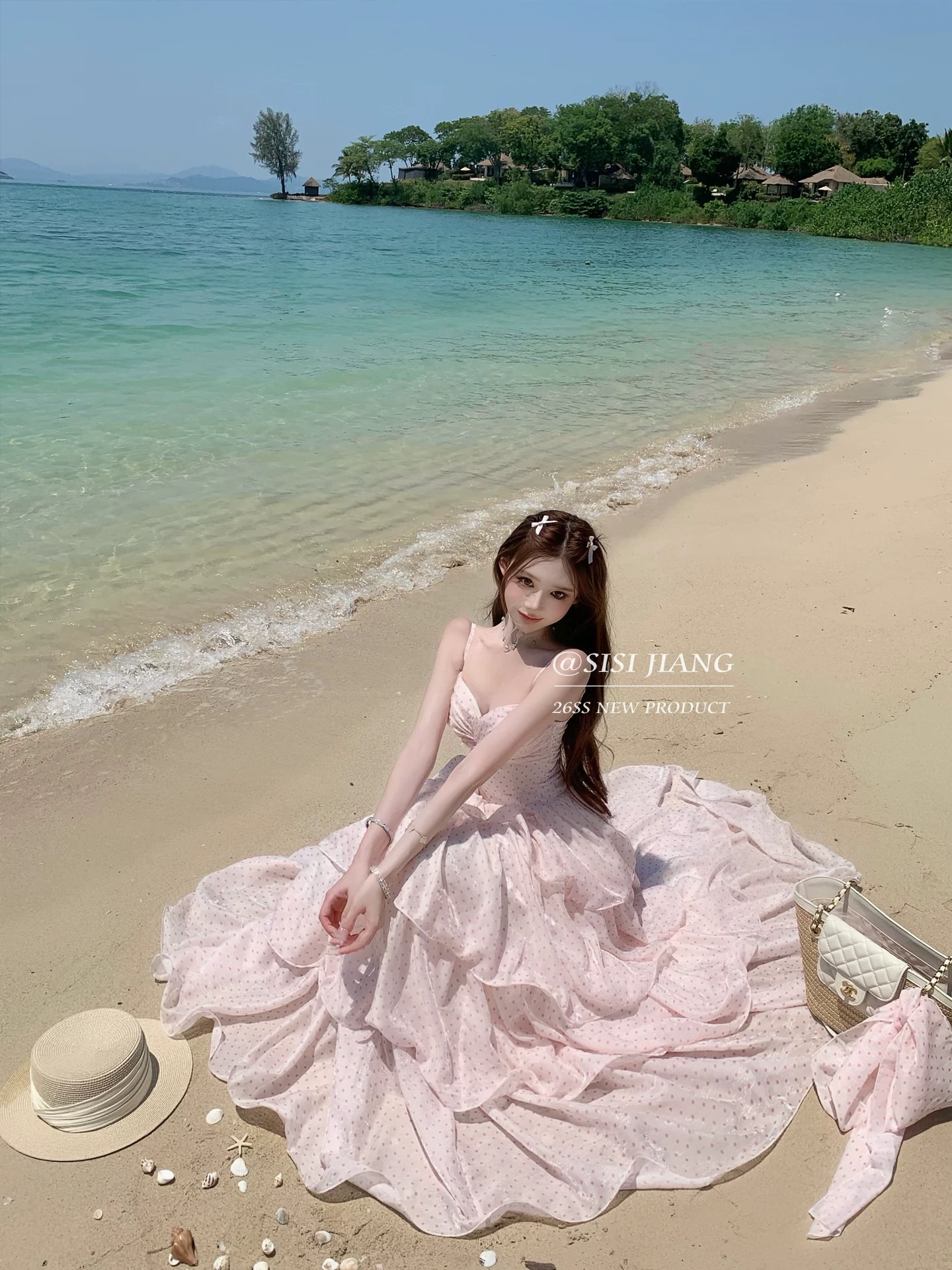 4 15 pm20 신제품 켜기 새로운 하나 달콤한 복숭아 yikett 행침 목 맨위 반 스커트 세트