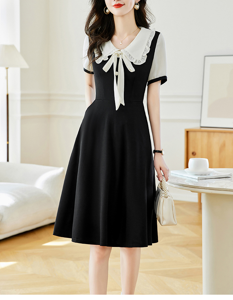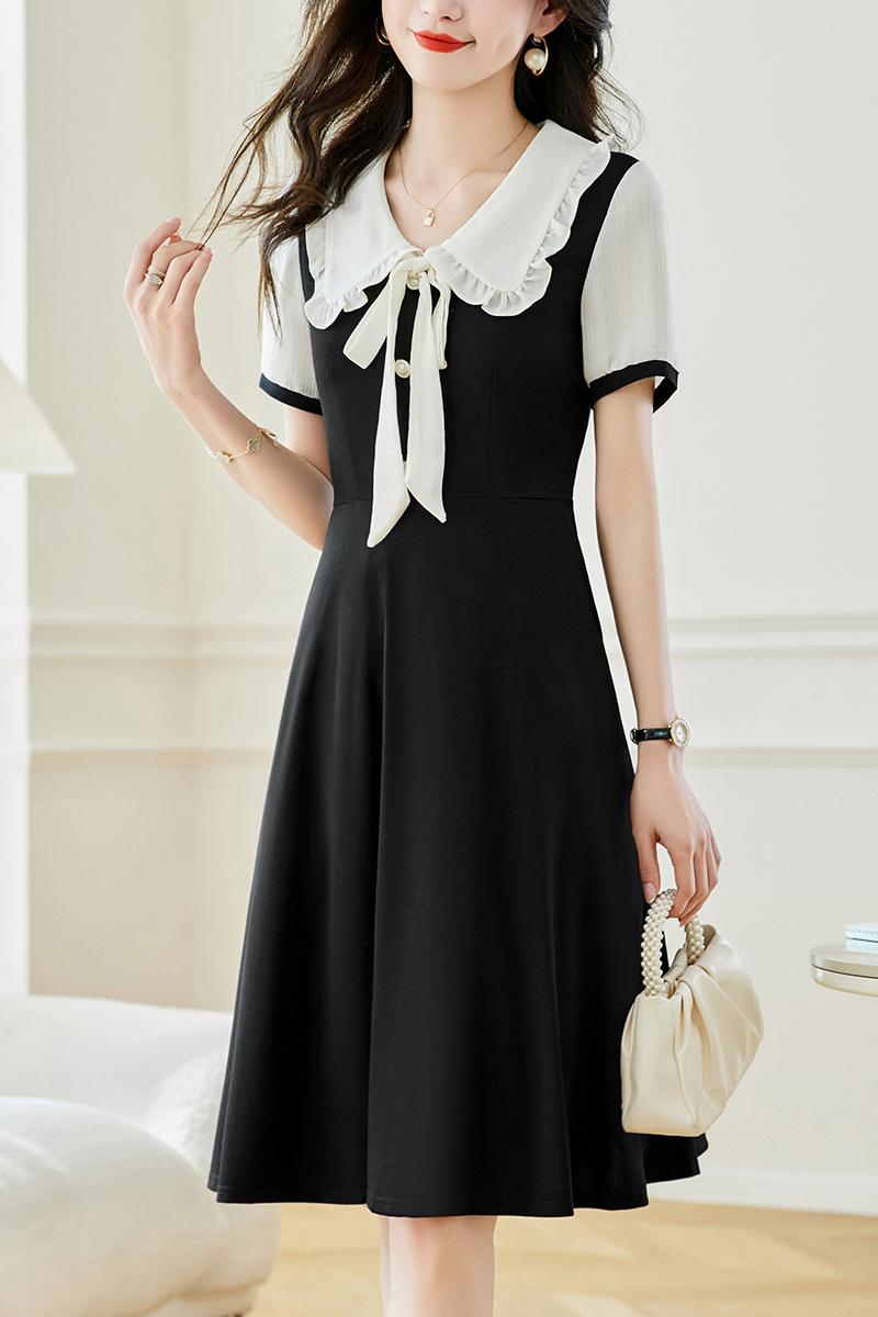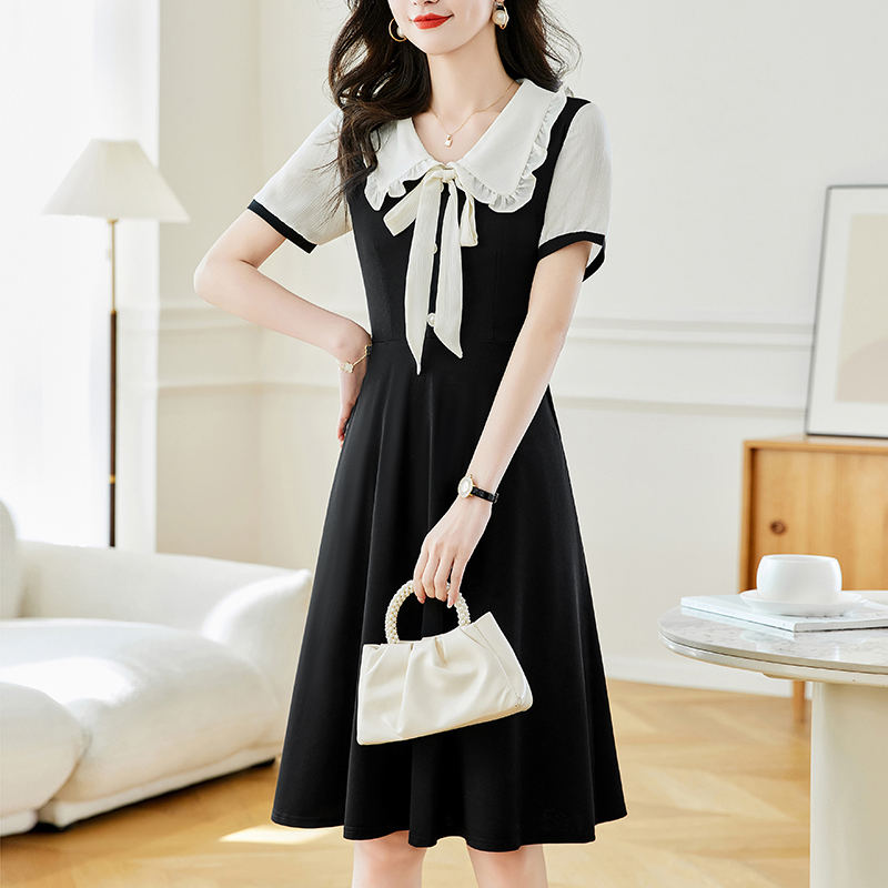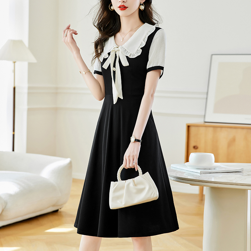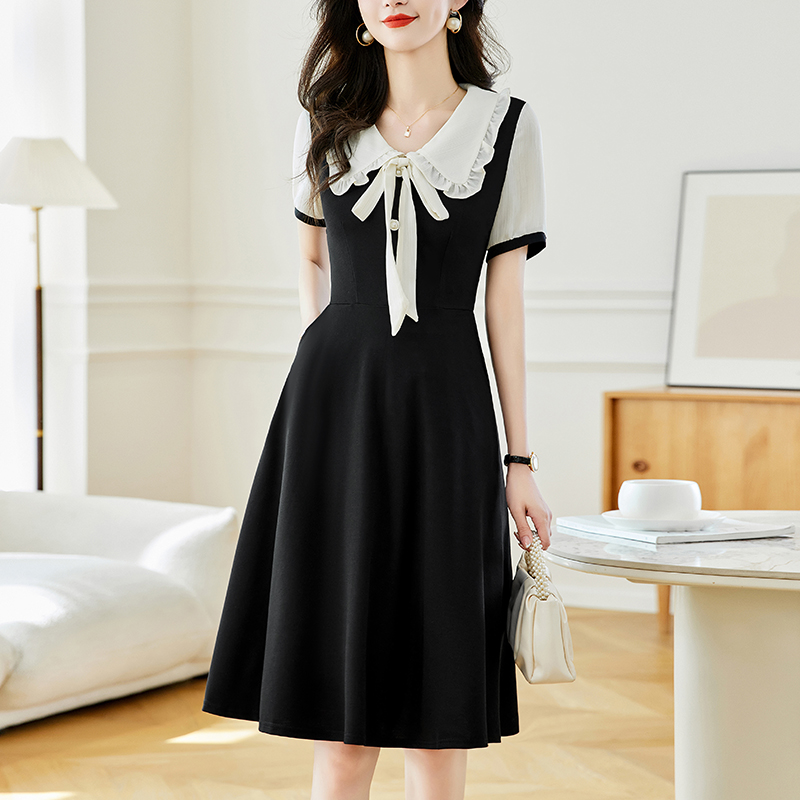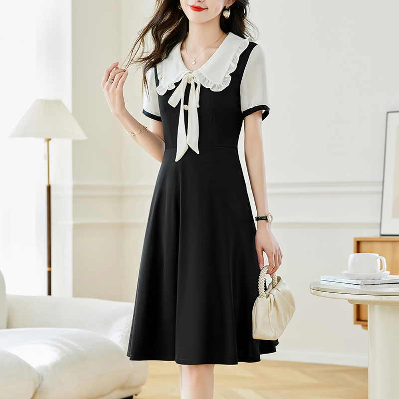 느슨한 여가 레이스 빈 스티칭 큰 사이즈 여성 의류 지방 mm 블랙 짧은 소매 드레스 여름 새로운 넓은 아내