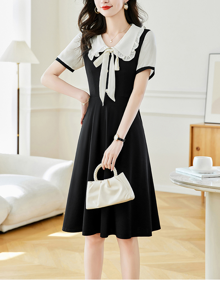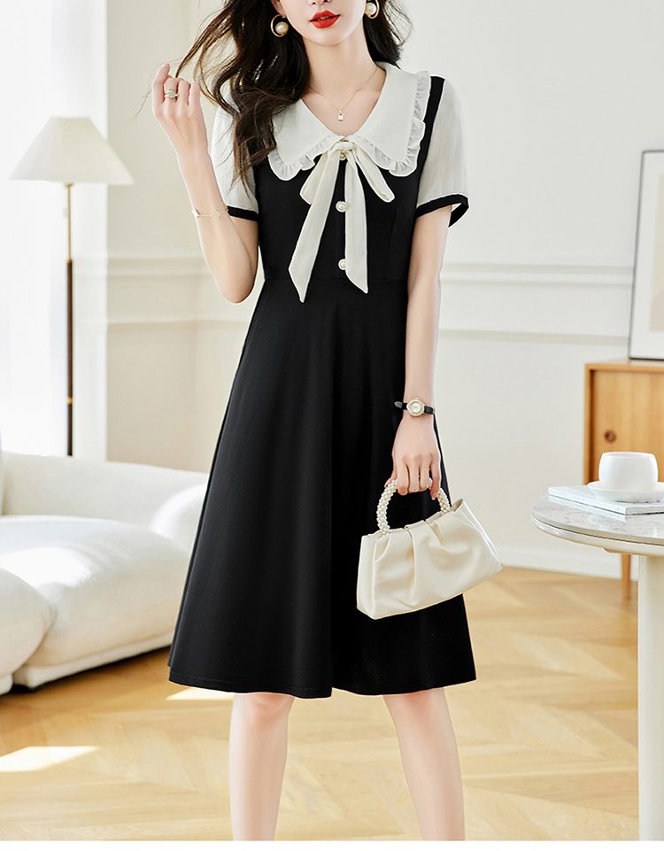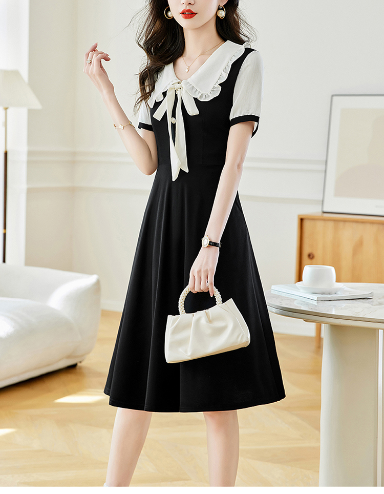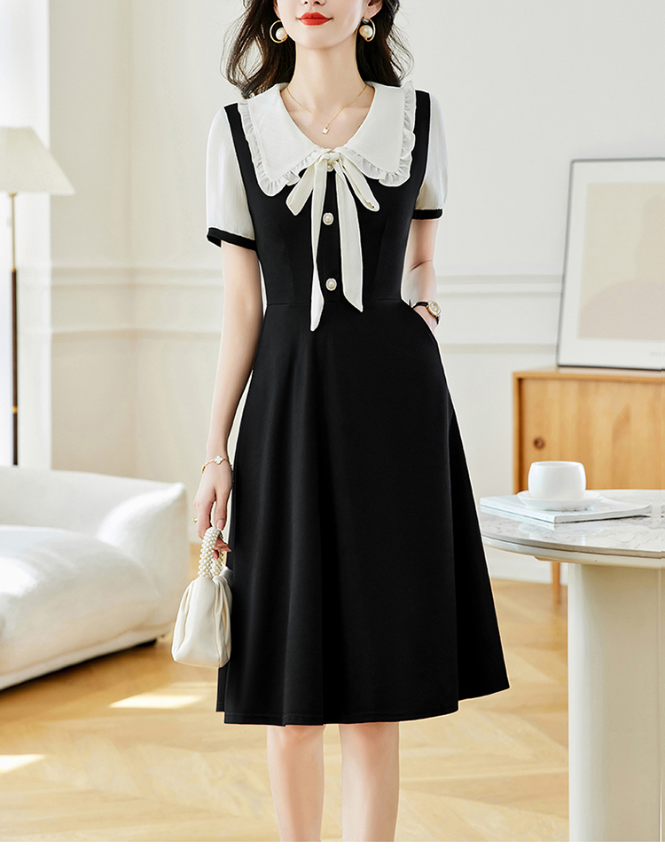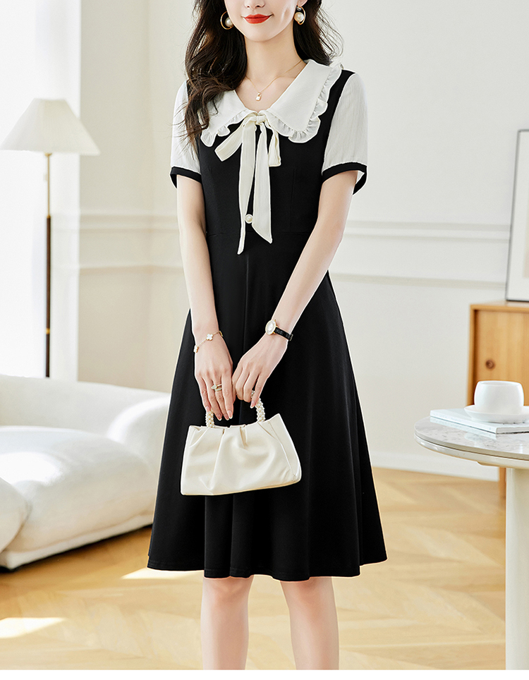 느슨한 여가 레이스 빈 스티칭 큰 사이즈 여성 의류 지방 mm 블랙 짧은 소매 드레스 여름 새로운 넓은 아내