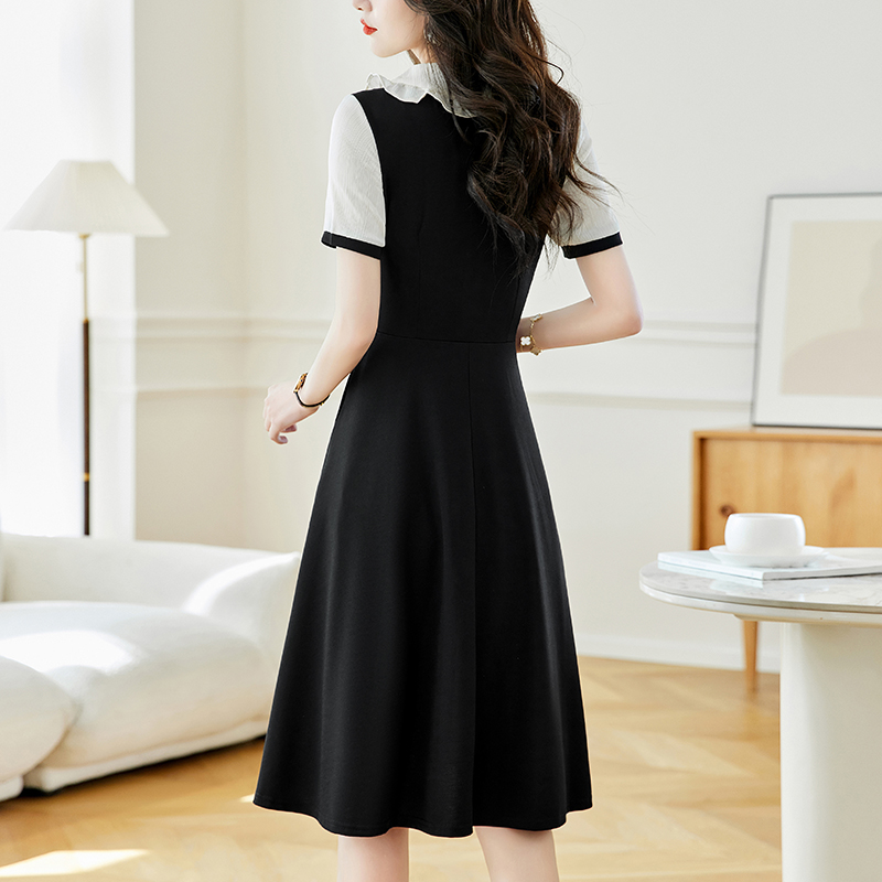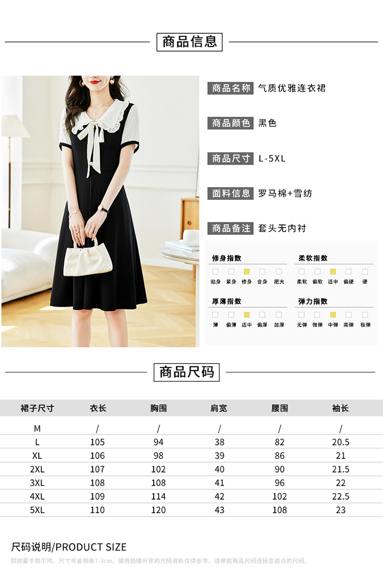 직장 기질 슬림 피트 중간 및 긴 섹션 큰 사이즈 여성 의류 지방 mm 블랙 슬림 레이스 짧은 소매 드레스 여름 새로운