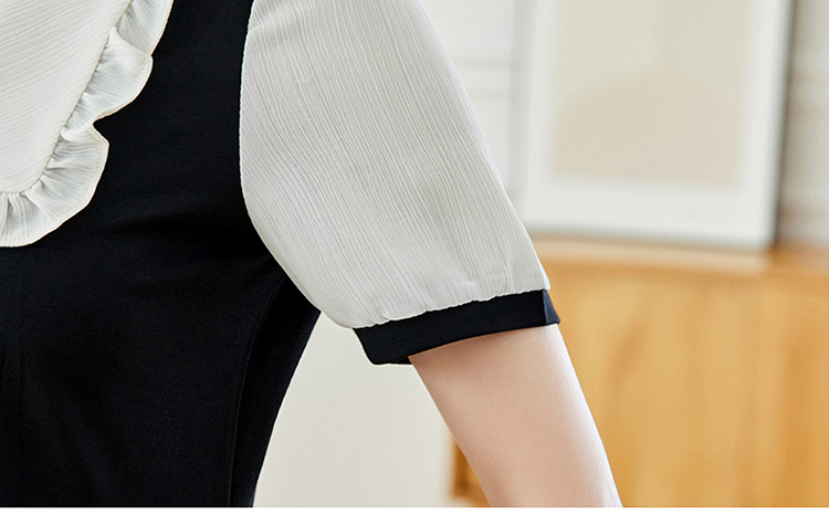 직장 기질 가짜 2 피스 슈트 대비 색 슬림 피트 중간 및 긴 섹션 큰 사이즈 여성 의류 지방 mm 짧은 소매 점프 슈트 치마 넓은 아내