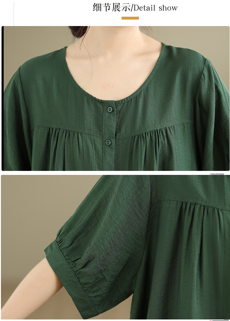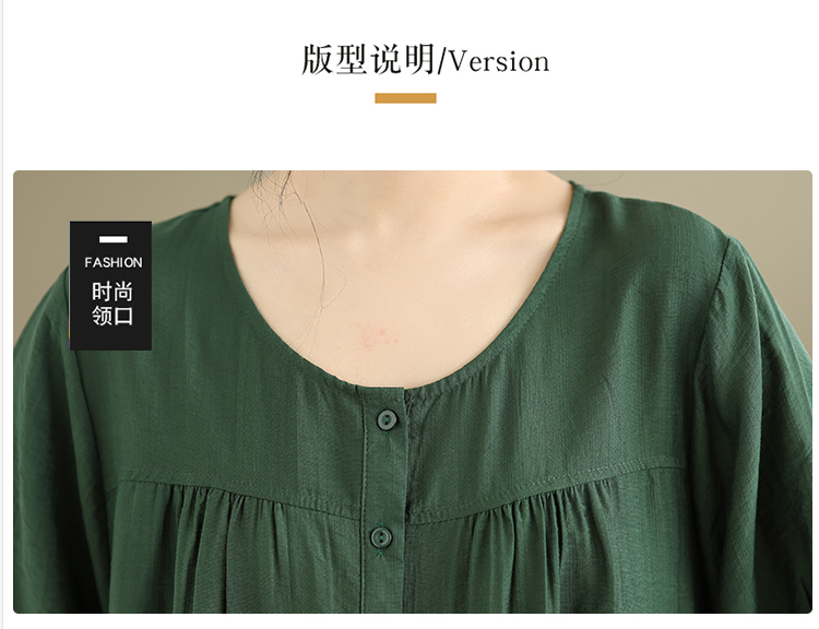 실사 5 점 소매 한국 스타일 빅 사이즈 표지 고기 슬림해 보이는 레트로 자수 외국 가스 세련된 면 린넨 셔츠 2026 새로운 여성