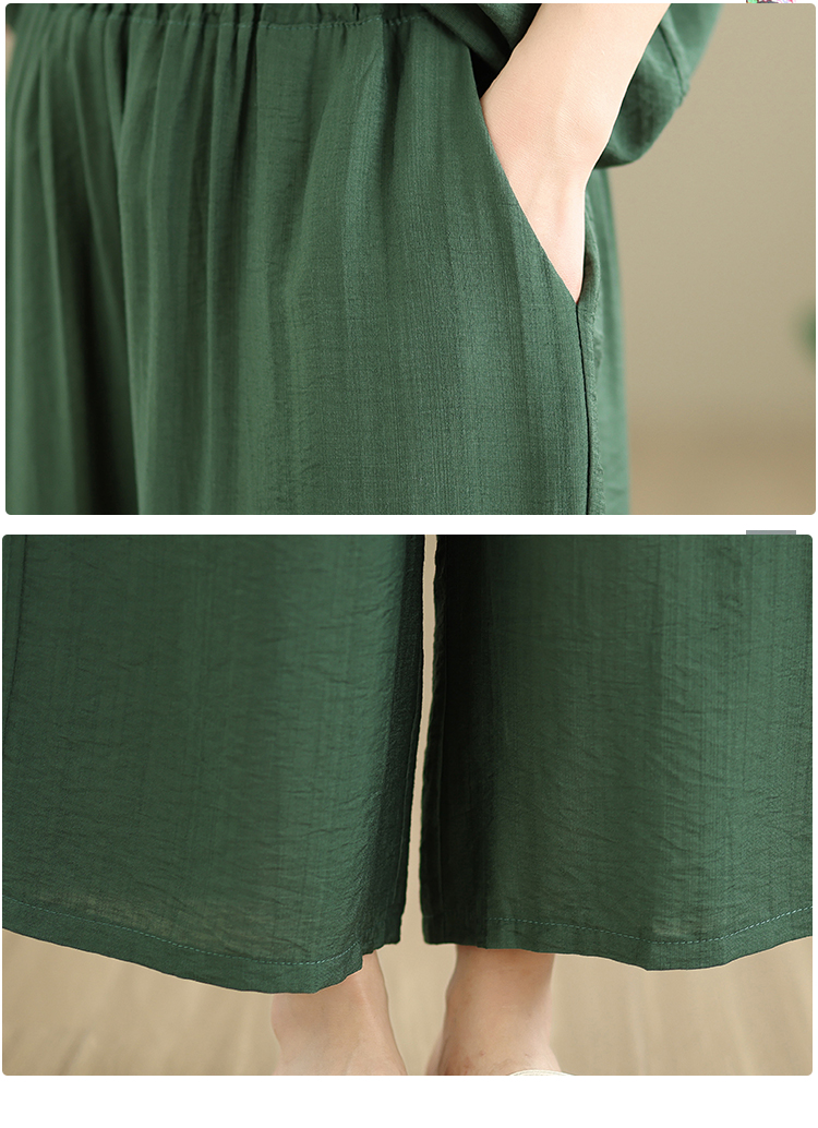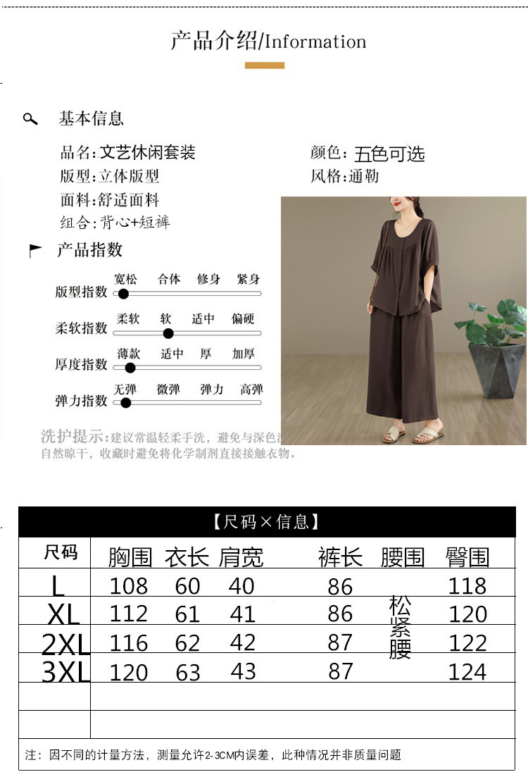 2026 실사 면 린넨 세트 여성 여름 루즈핏 빅 사이즈 슬림해 보이는 연령 감소 티셔츠 와이드 레그 팬츠 투피스 세트
