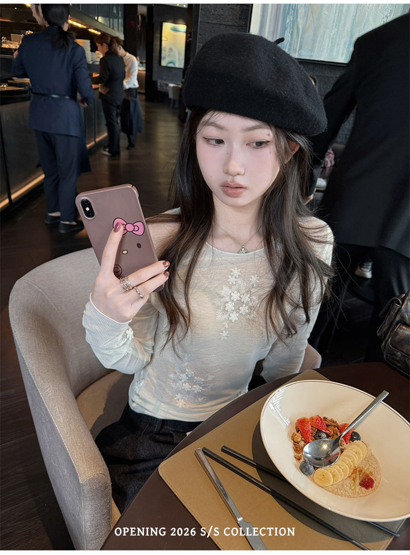 opening 직접 만든 소녀 꿈 나라 3 차원 절묘한 자수 니트 마이크로 ~을 통해 긴팔 티셔츠 여성 봄 한 첨부 된 의류