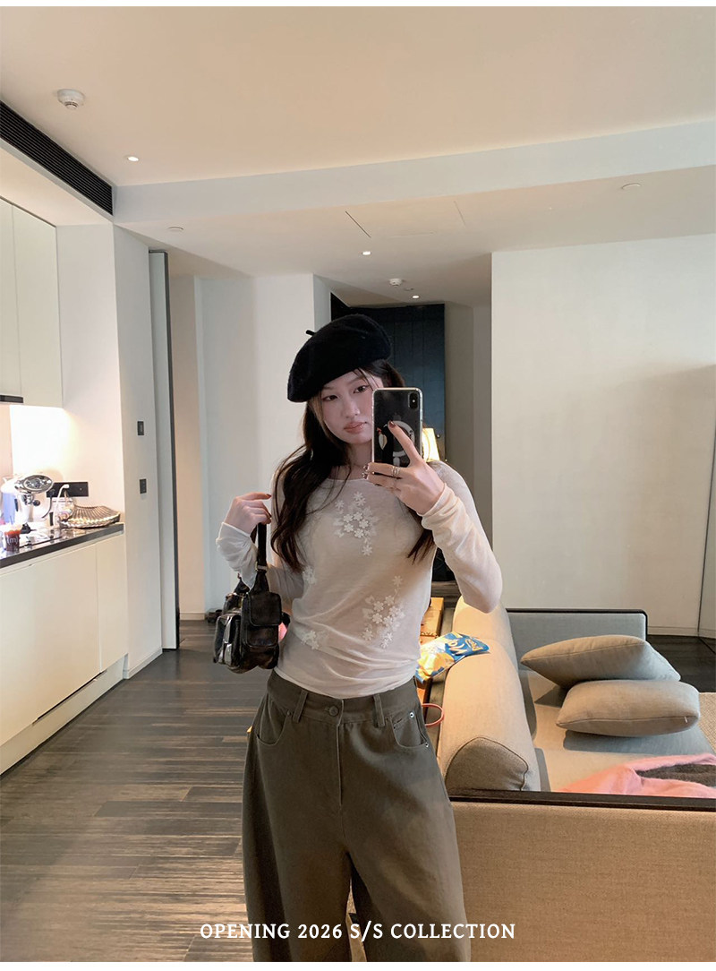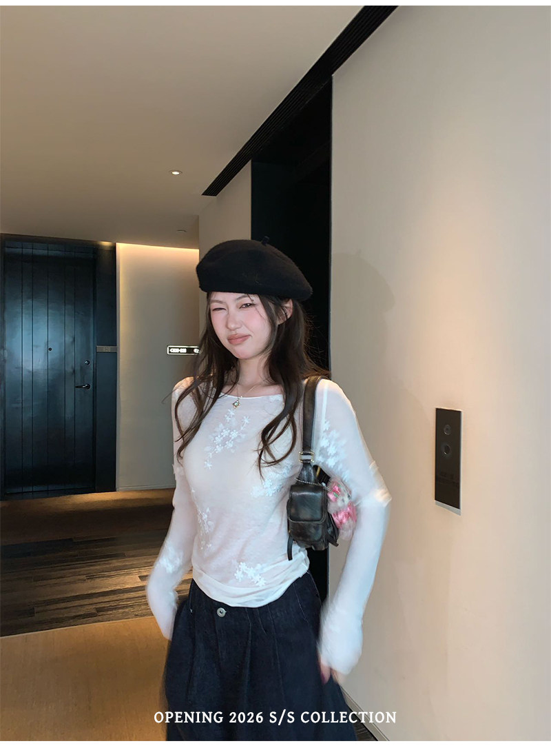 1개 다곤 1z1zgun 플라잉 플라워 꿈 나라 이른 봄 새로운 3 차원 자수 망사 긴팔 티셔츠 청 ~을 통해 태양 보호 셔츠
