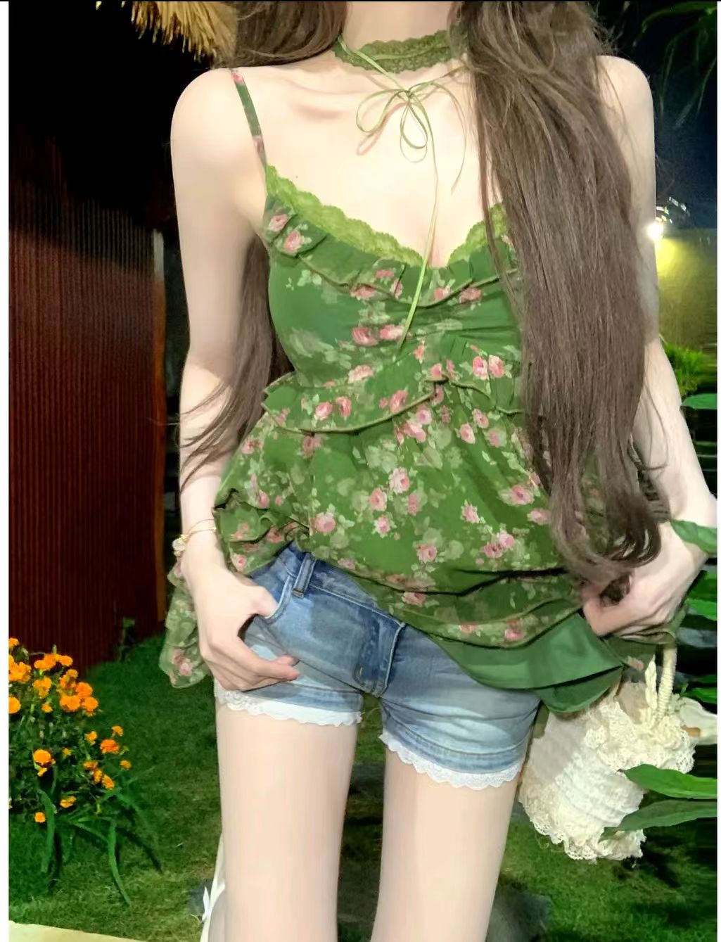 루이 茜 웨이 Sher S 그린 필드 팬 추적 봄 달콤함 전원 바람 중국 스타일 의류 점프 슈트 치마 r9430d