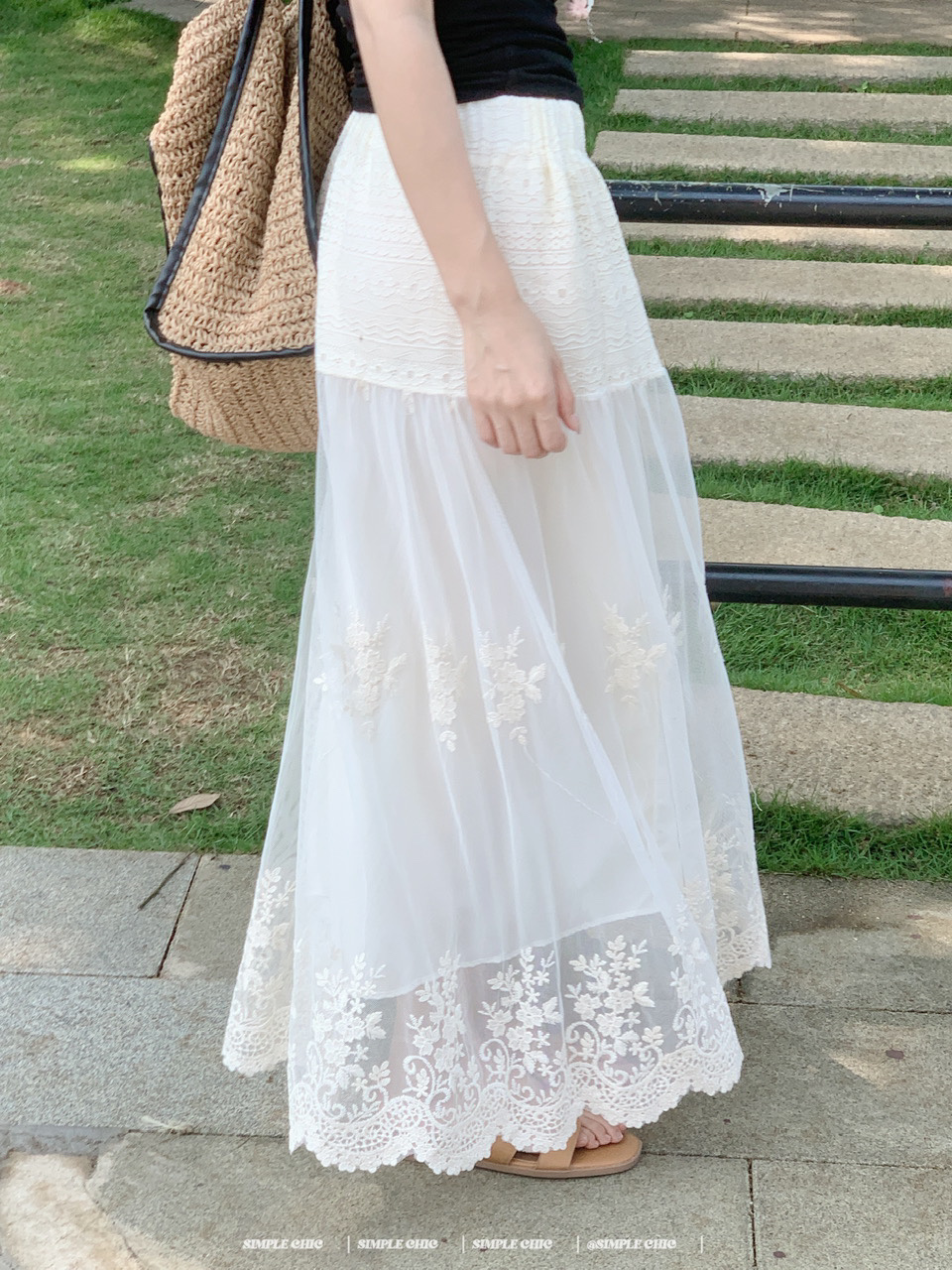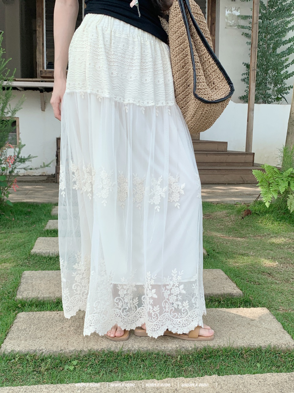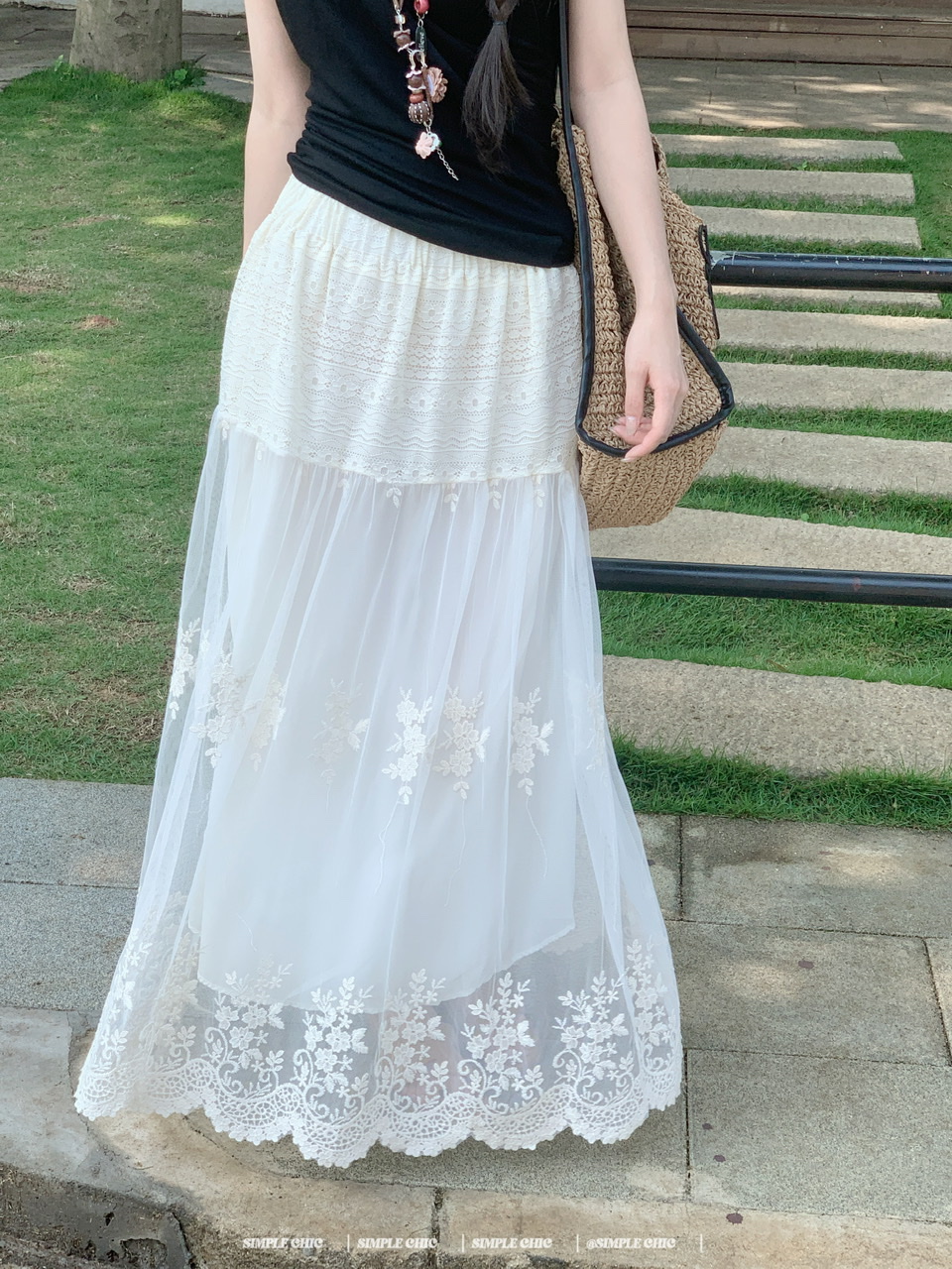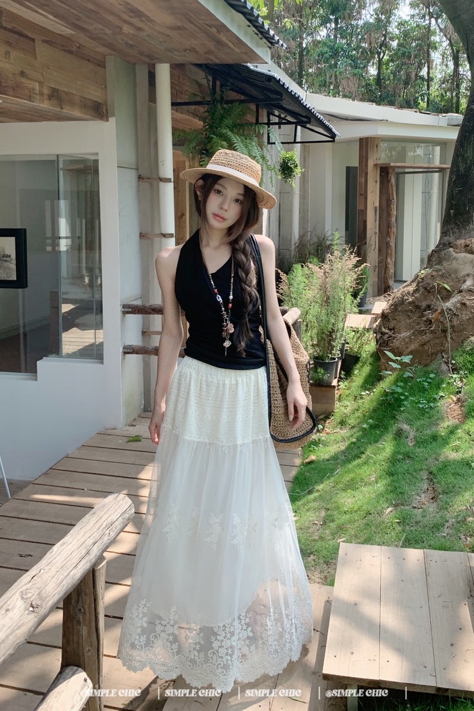실사 보헤미안 휴가 바람 자수 반신 스커트 여름 도루 센스 주름 한 마디 큰 진자 롱 스커트