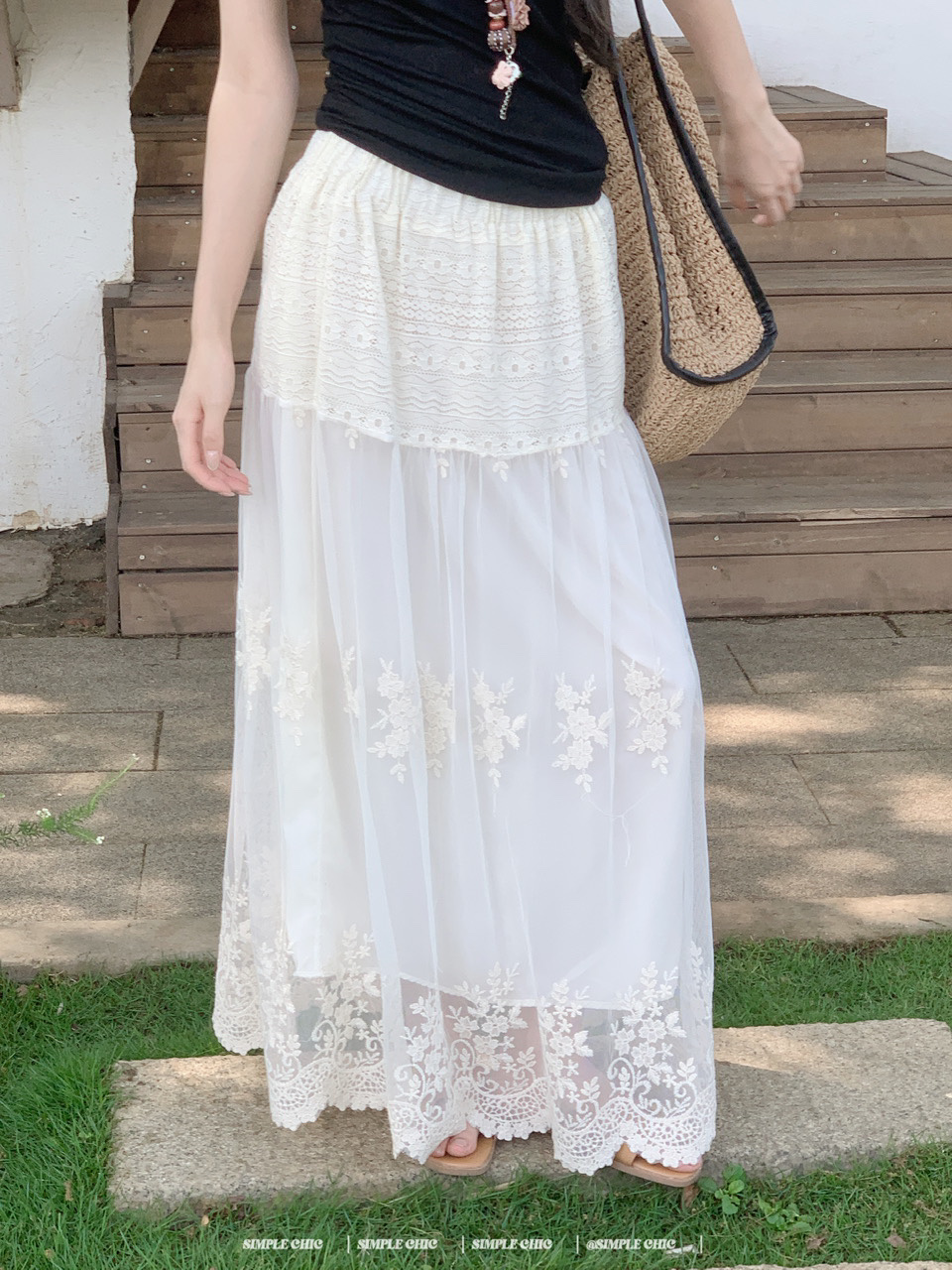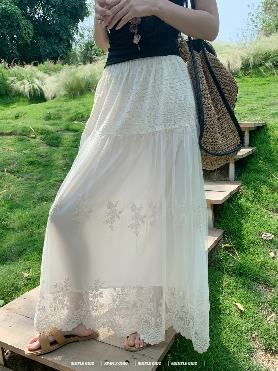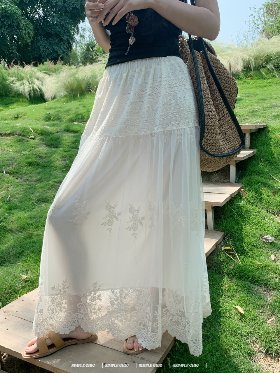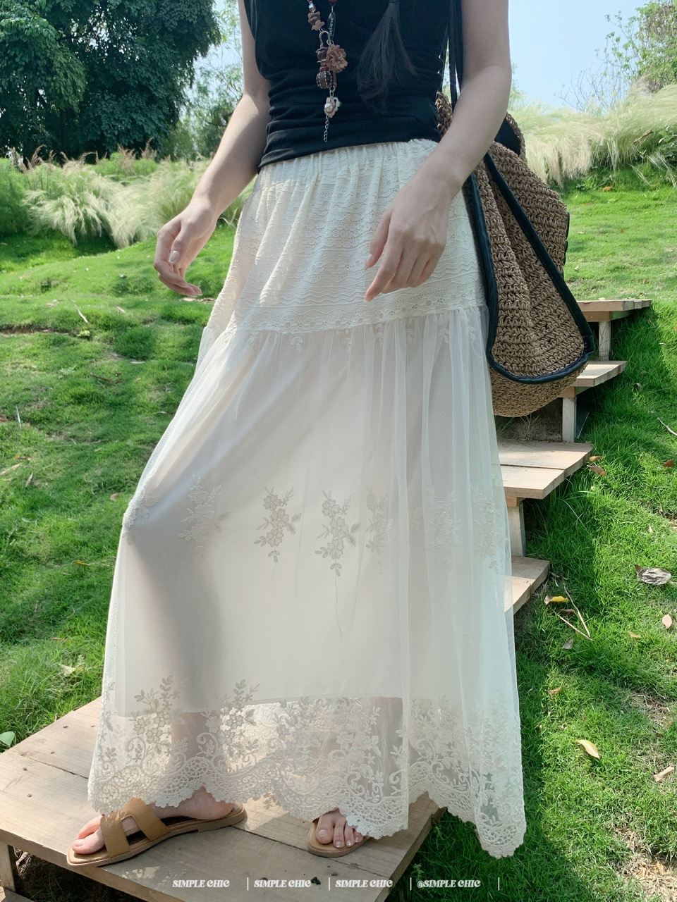 실사 보헤미안 휴가 바람 자수 반신 스커트 여름 도루 센스 주름 한 마디 큰 진자 롱 스커트