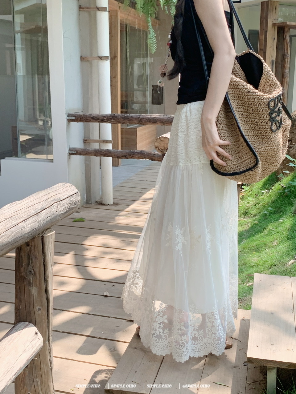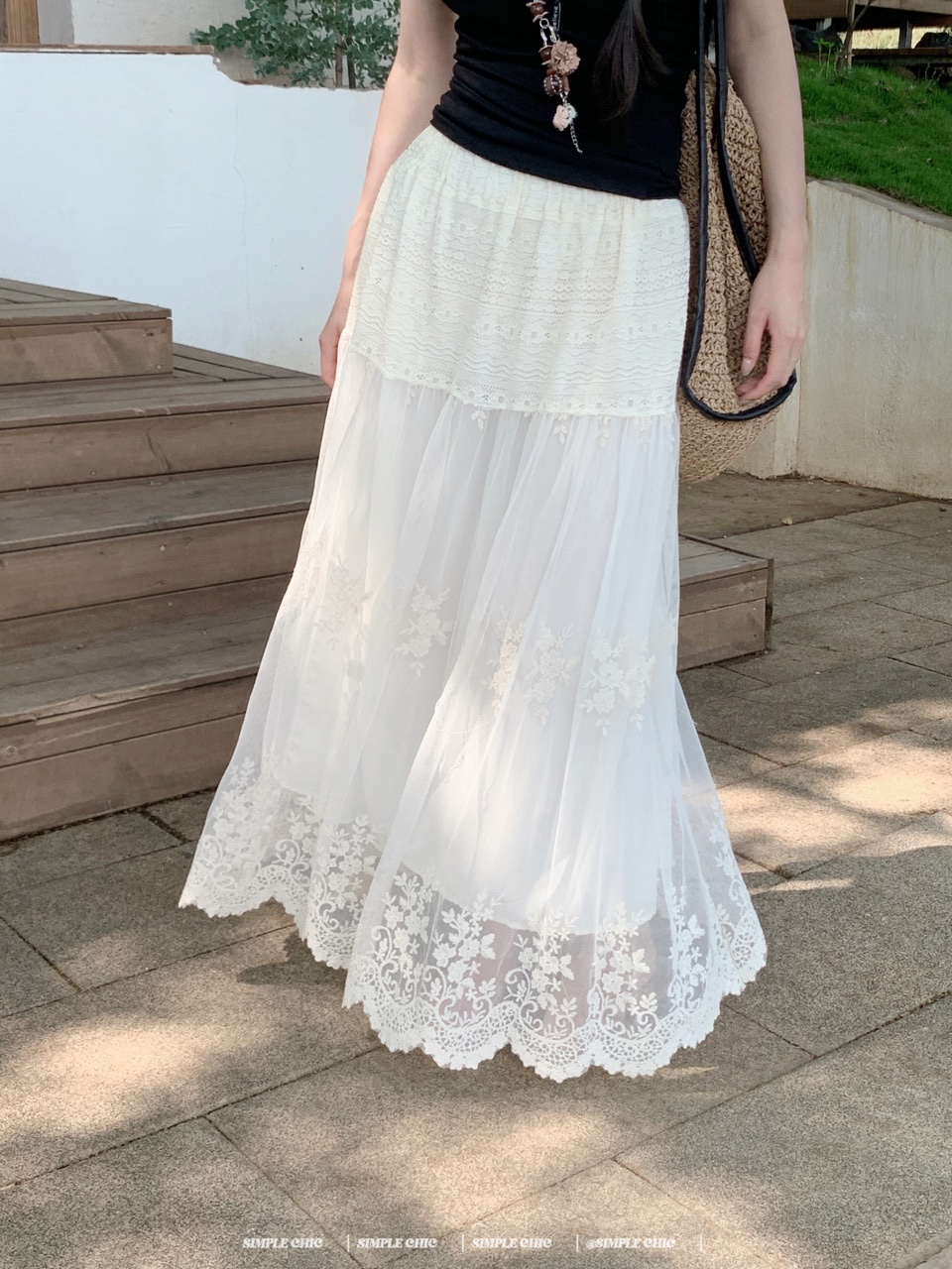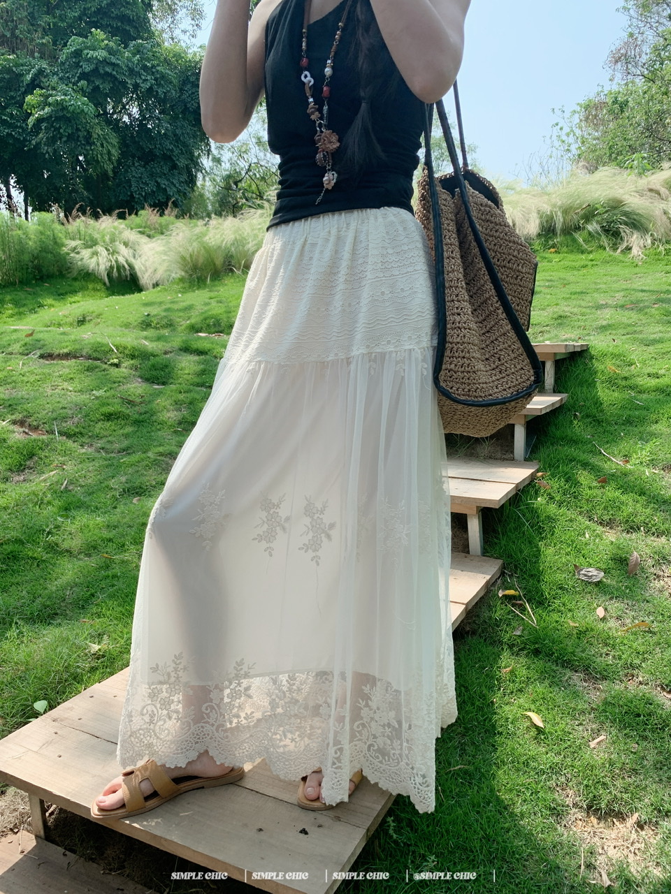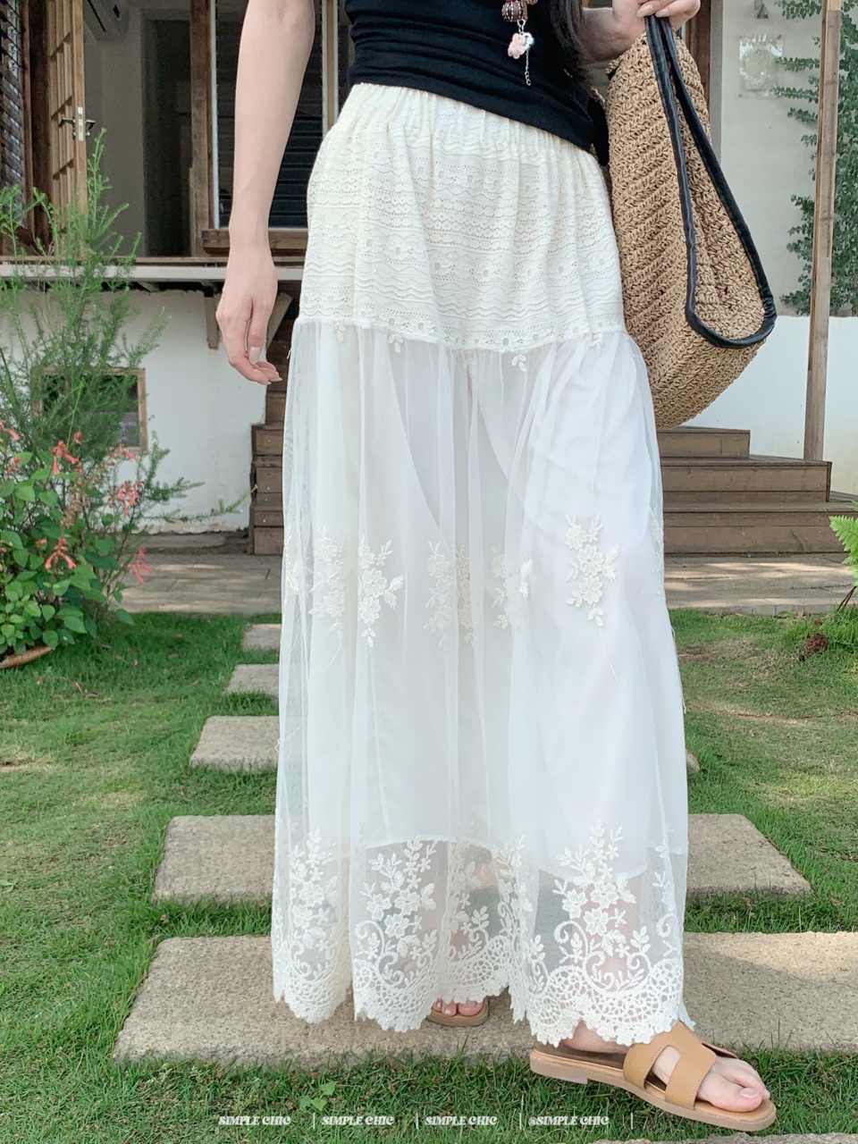 실사 보헤미안 휴가 바람 자수 반신 스커트 여름 도루 센스 주름 한 마디 큰 진자 롱 스커트