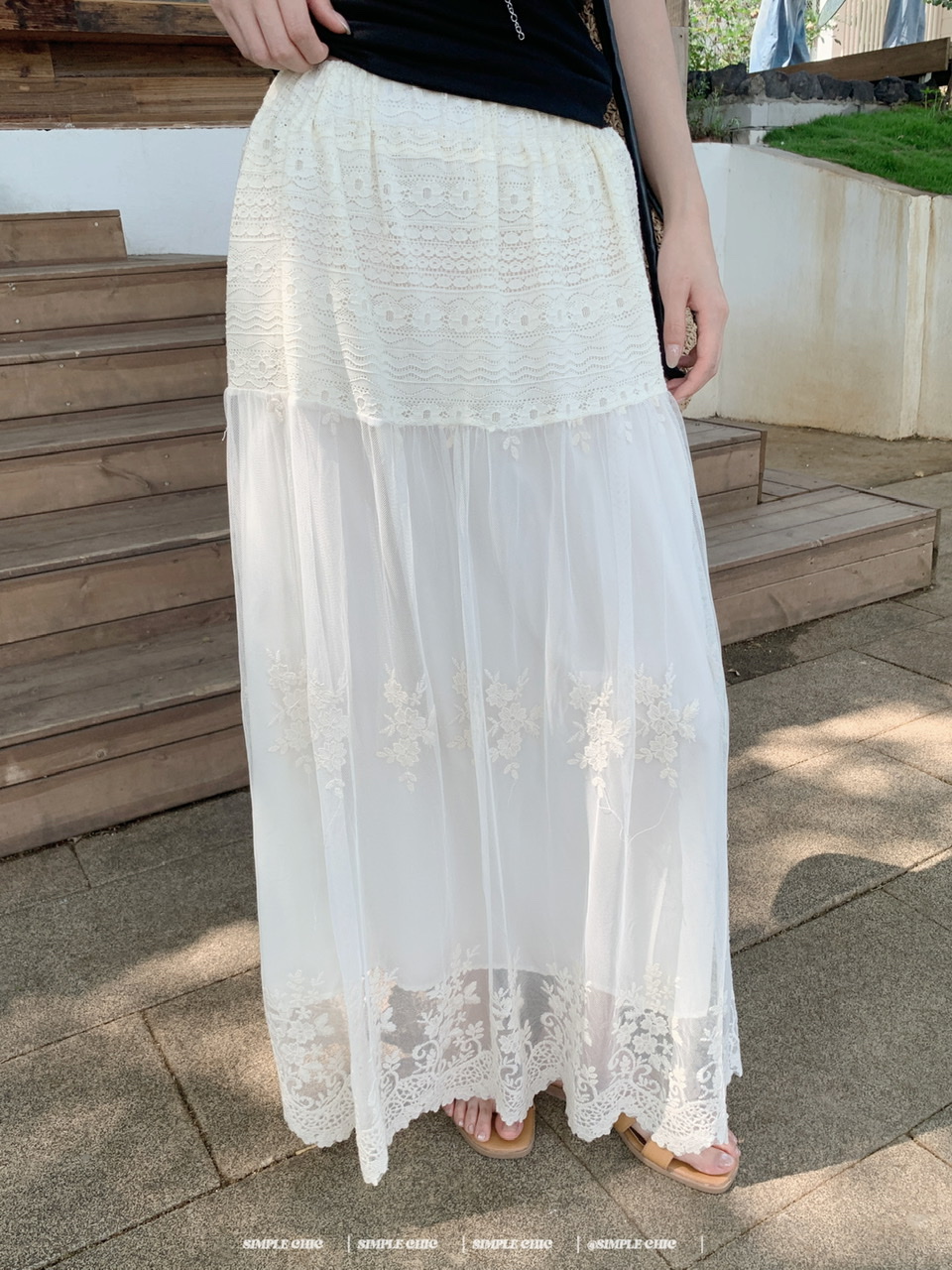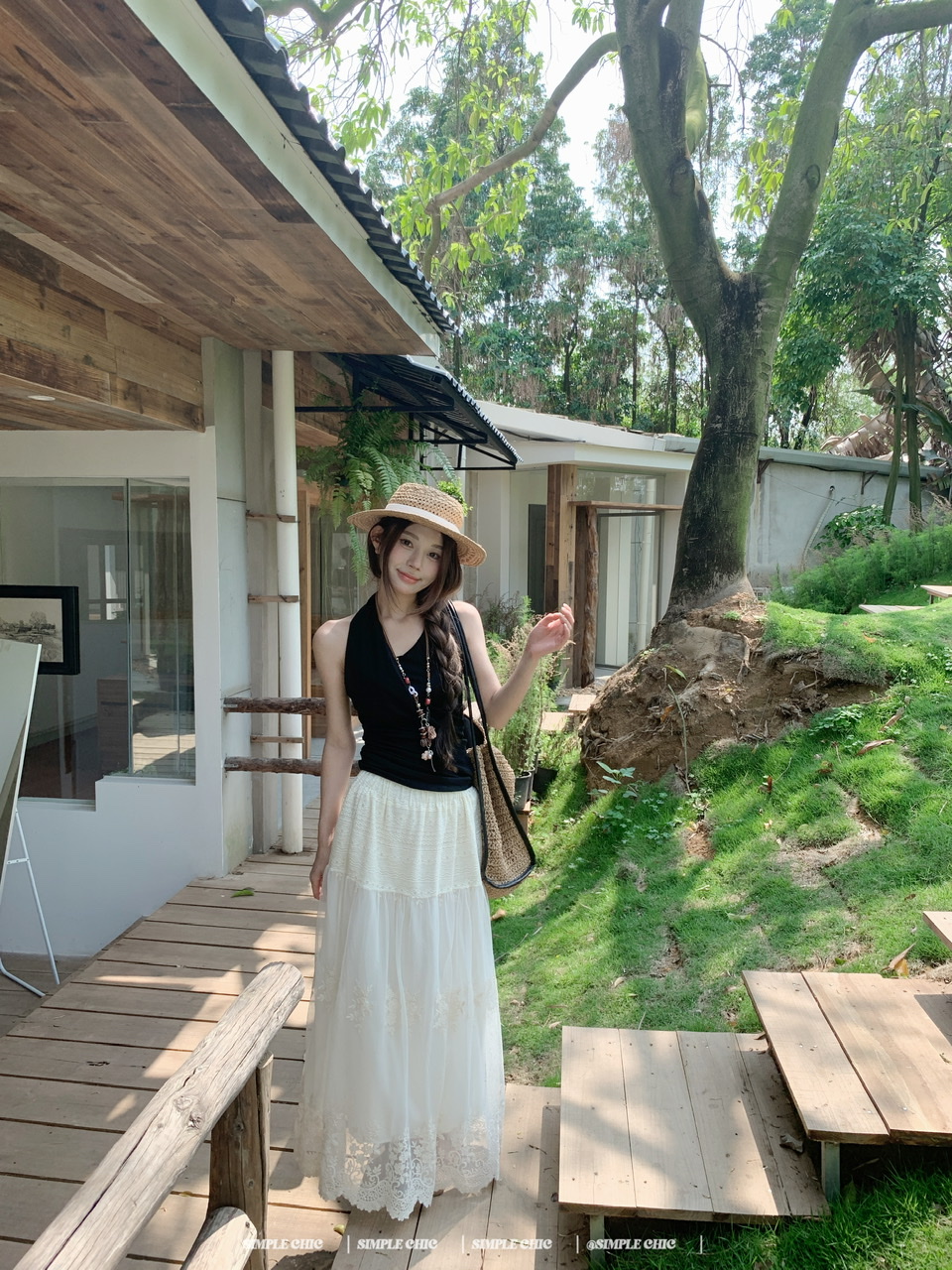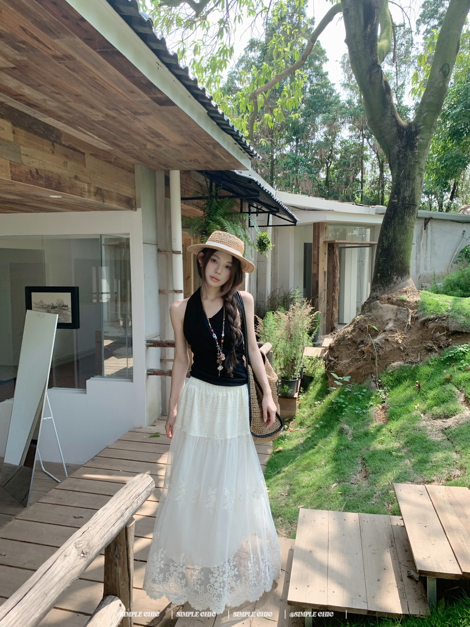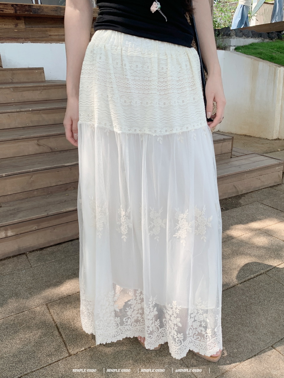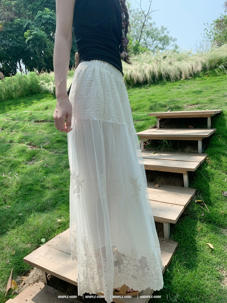실사 디스플레이 화이트 박하 녹색 민소매 조끼 맨위 도루 센스 큰 진자 요정 가스 펄럭 이는 학위 가발 반신 스커트 롱 스커트
