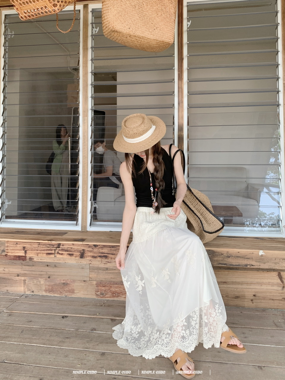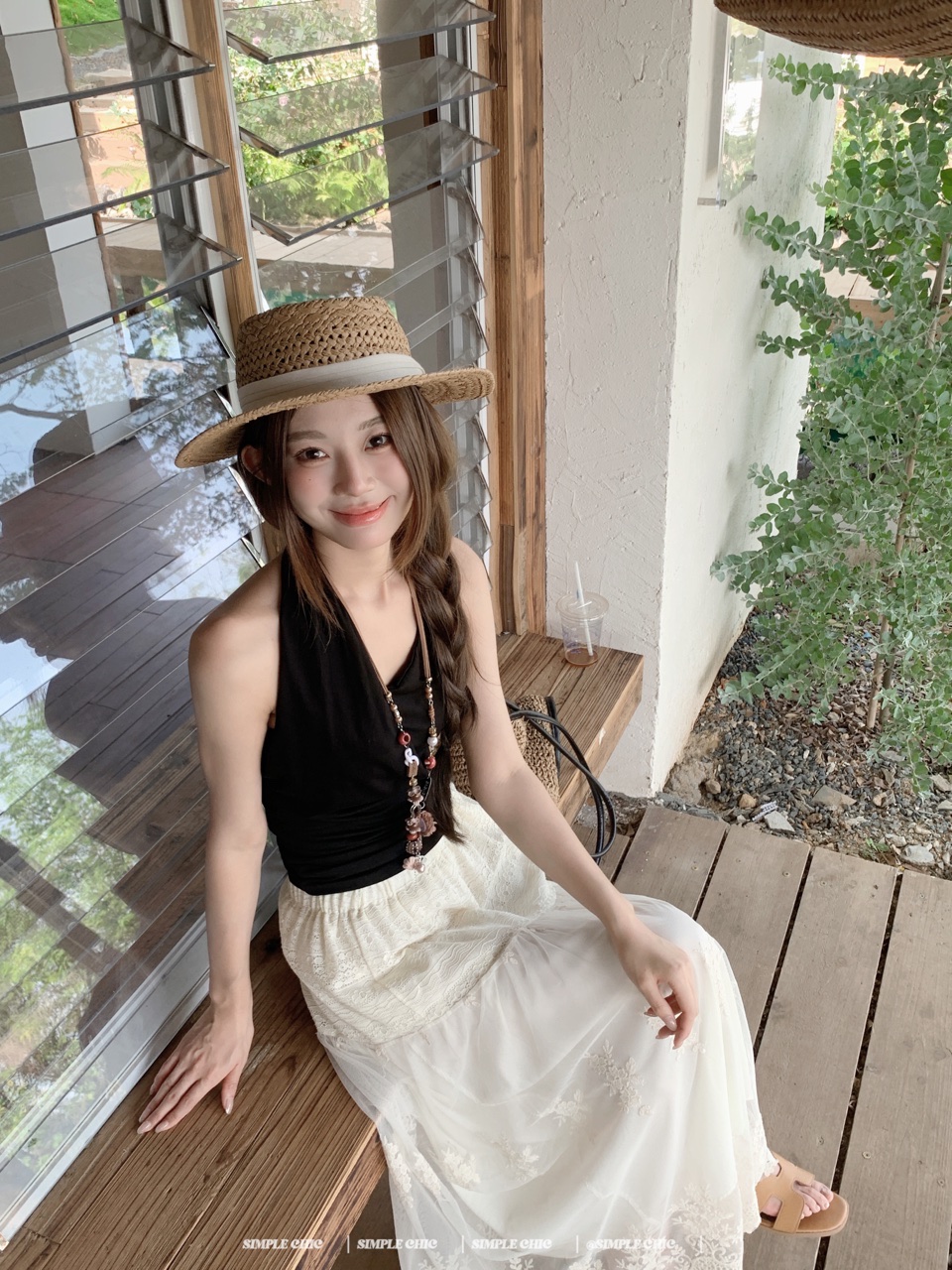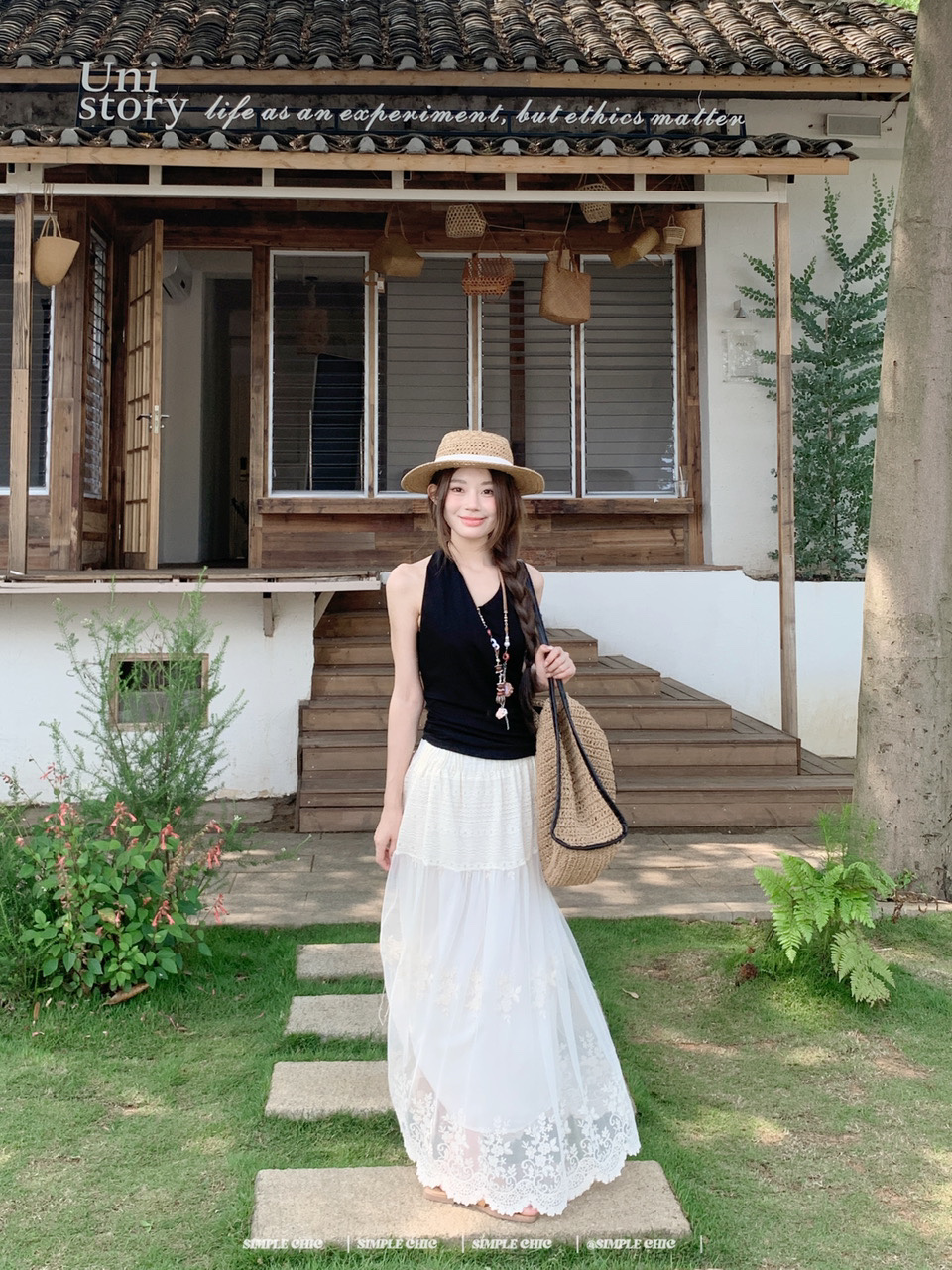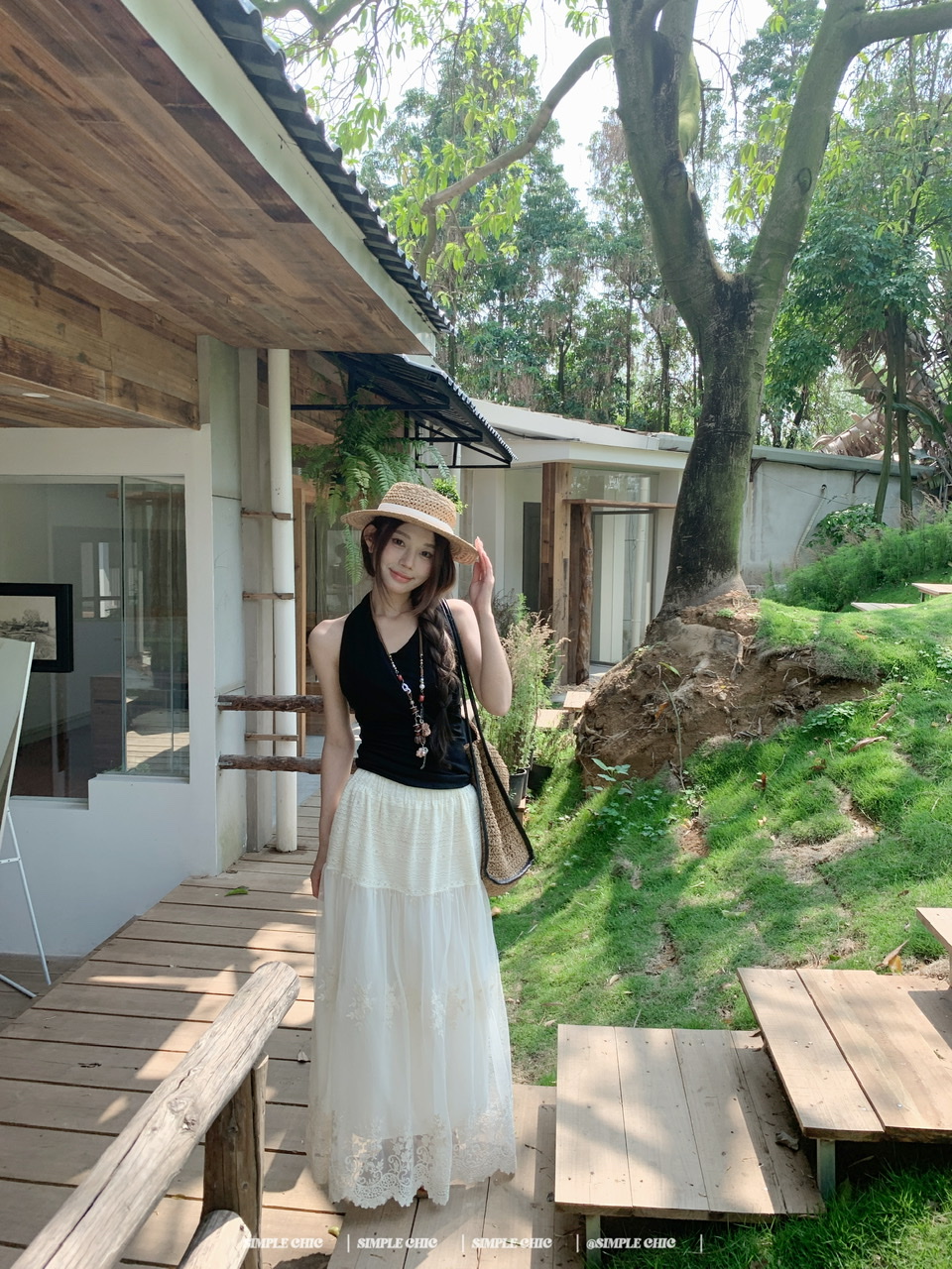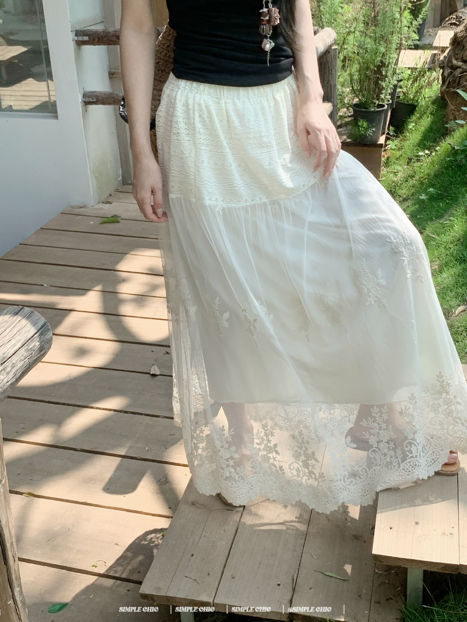 실사 디스플레이 화이트 박하 녹색 민소매 조끼 맨위 도루 센스 큰 진자 요정 가스 펄럭 이는 학위 가발 반신 스커트 롱 스커트