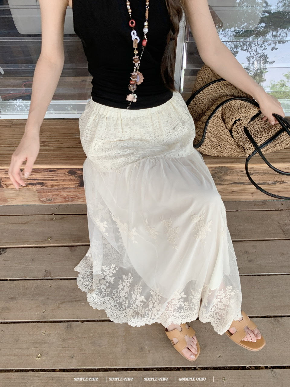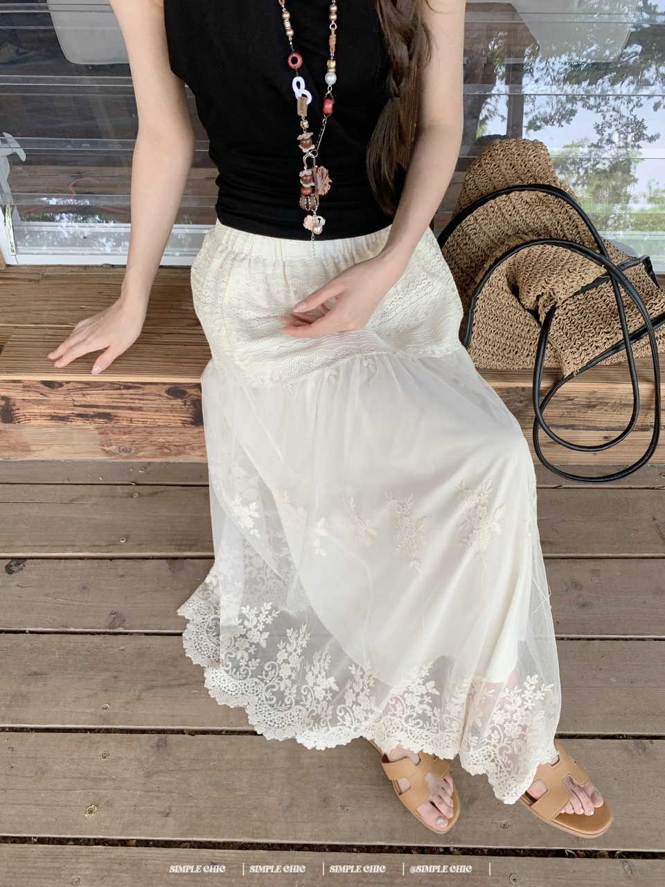 실사 보헤미안 휴가 바람 반신 스커트 여름 도루 센스 주름 한 마디 롱 스커트