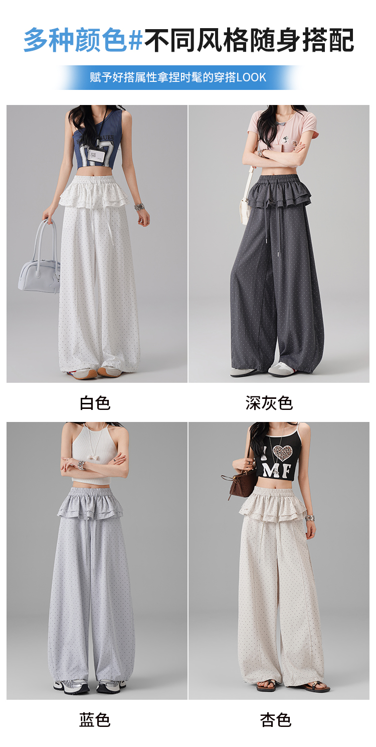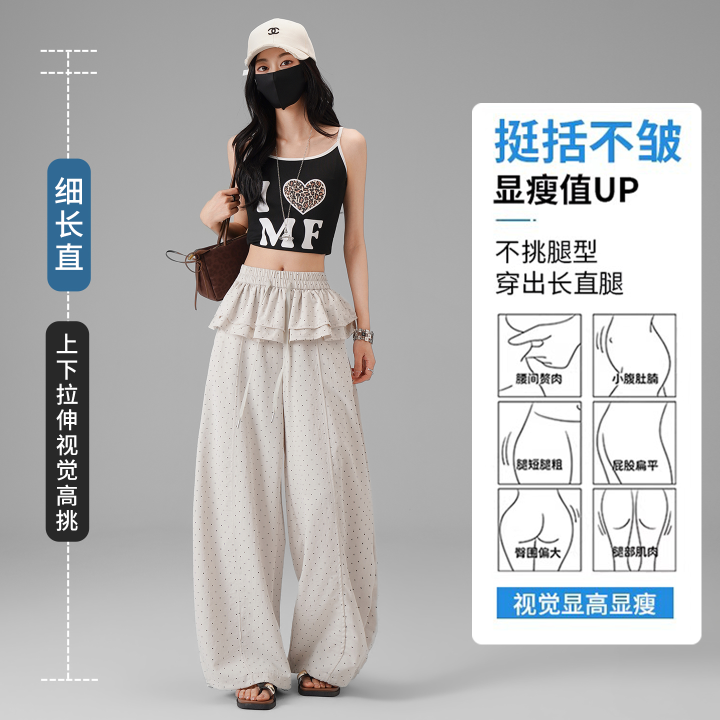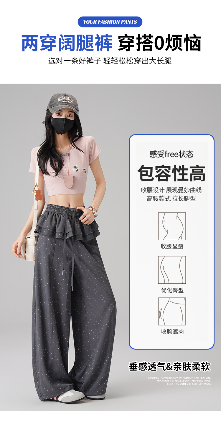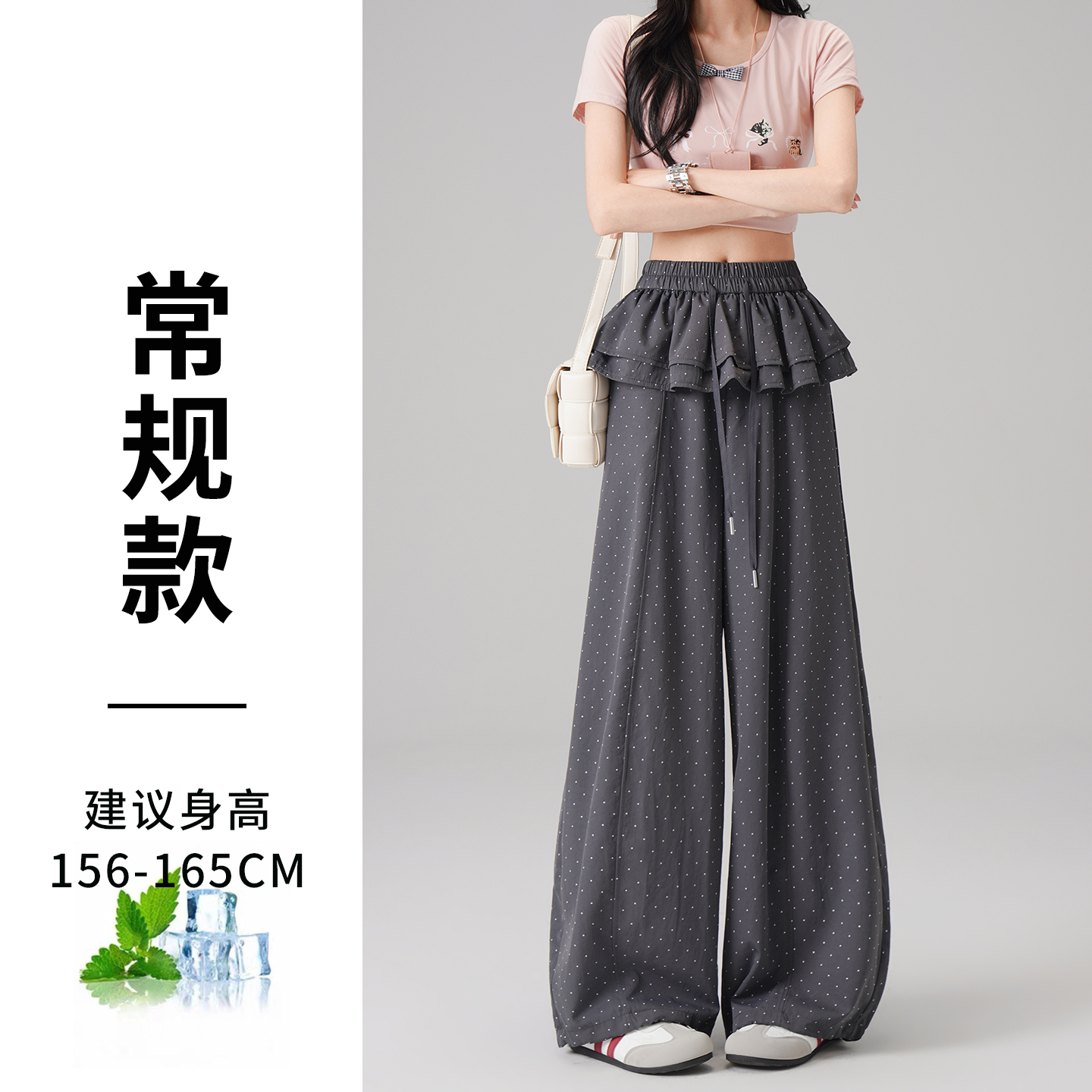 페이크 레이어드 방귀 커튼 도트 무늬 와이드 레깅스 바지 여름 얇은 스타일 2026 새로운 하이웨이스트 슬림해 보이는 루즈핏 도루 센스 바닥 청소 바지
