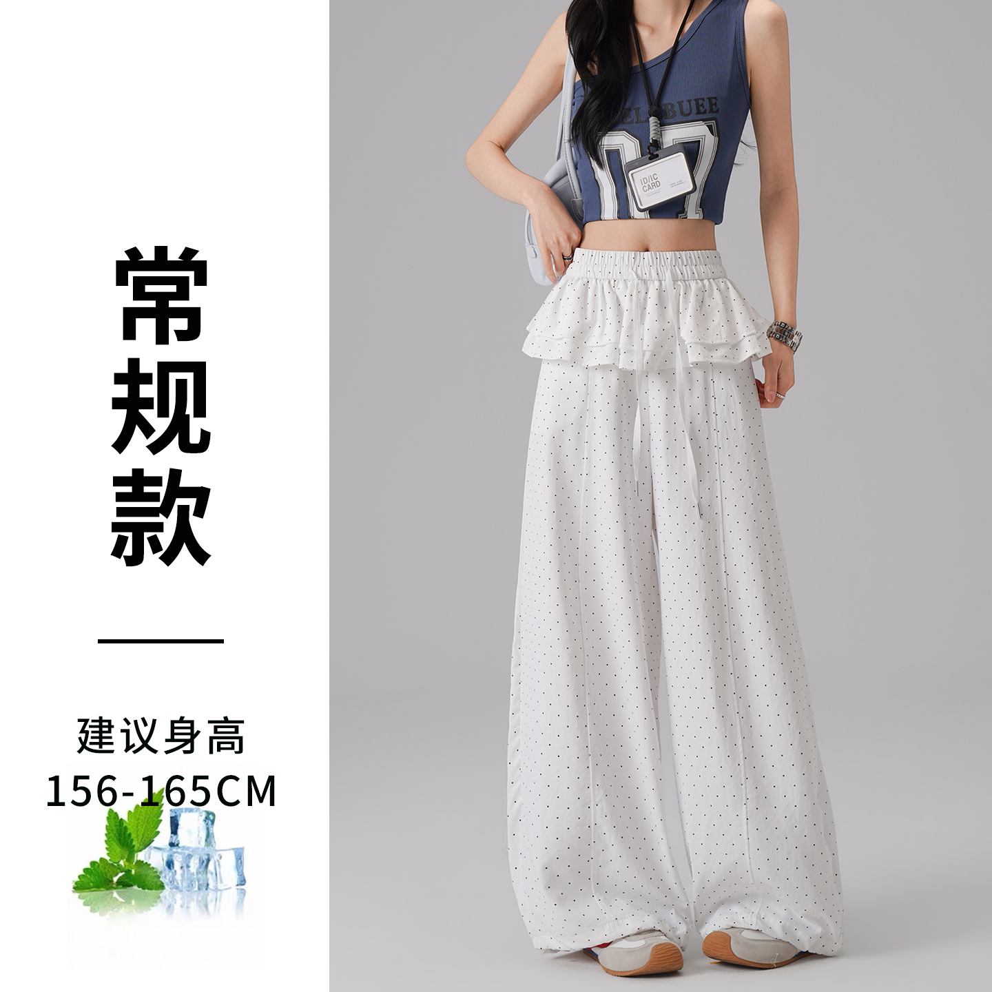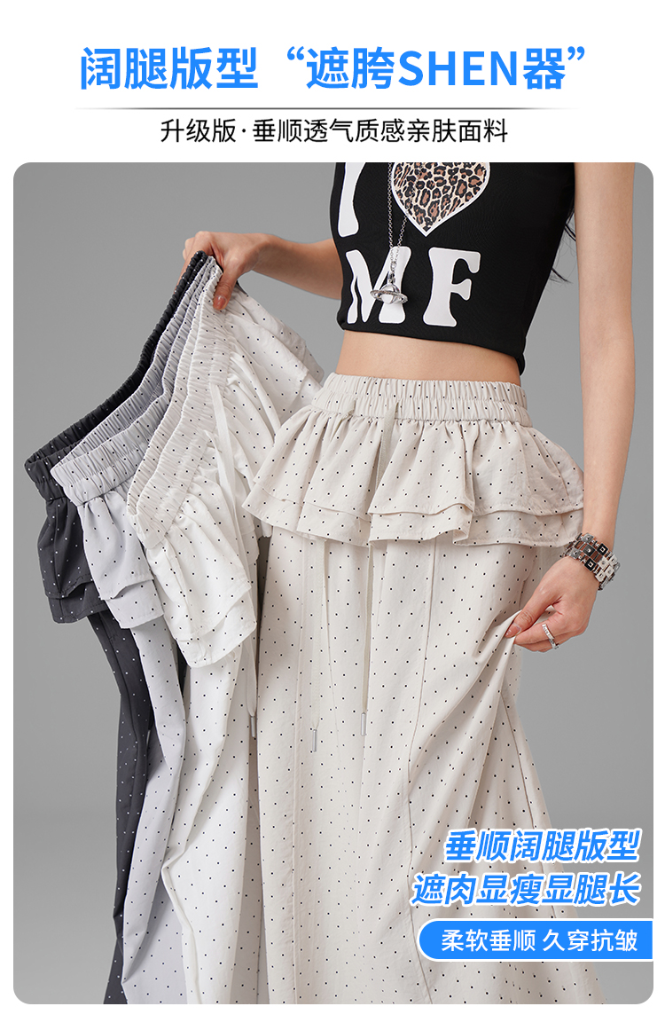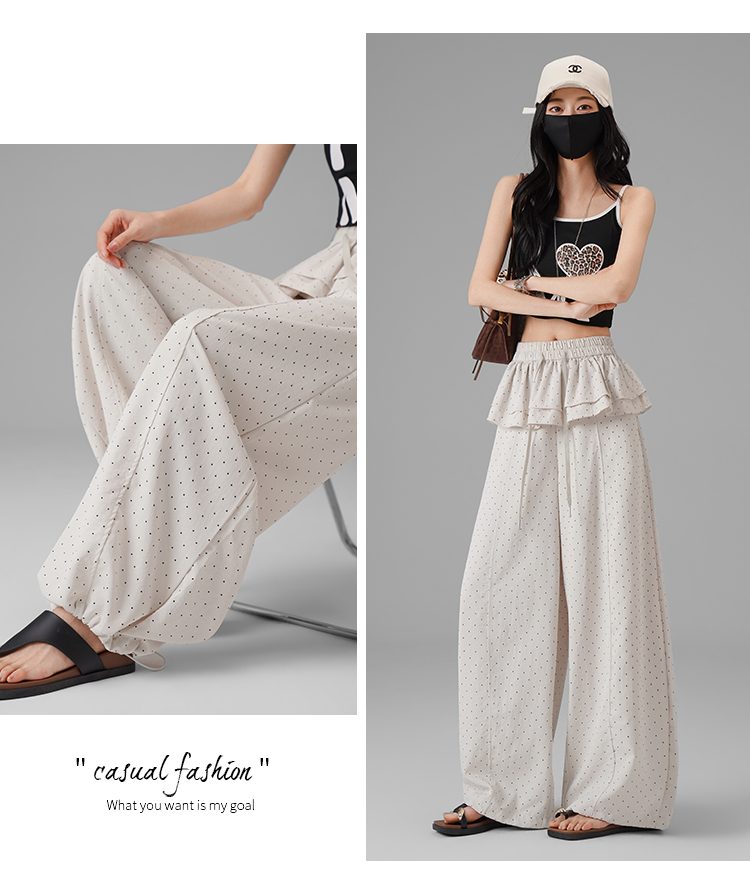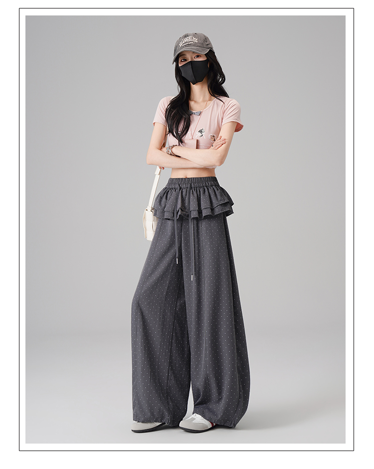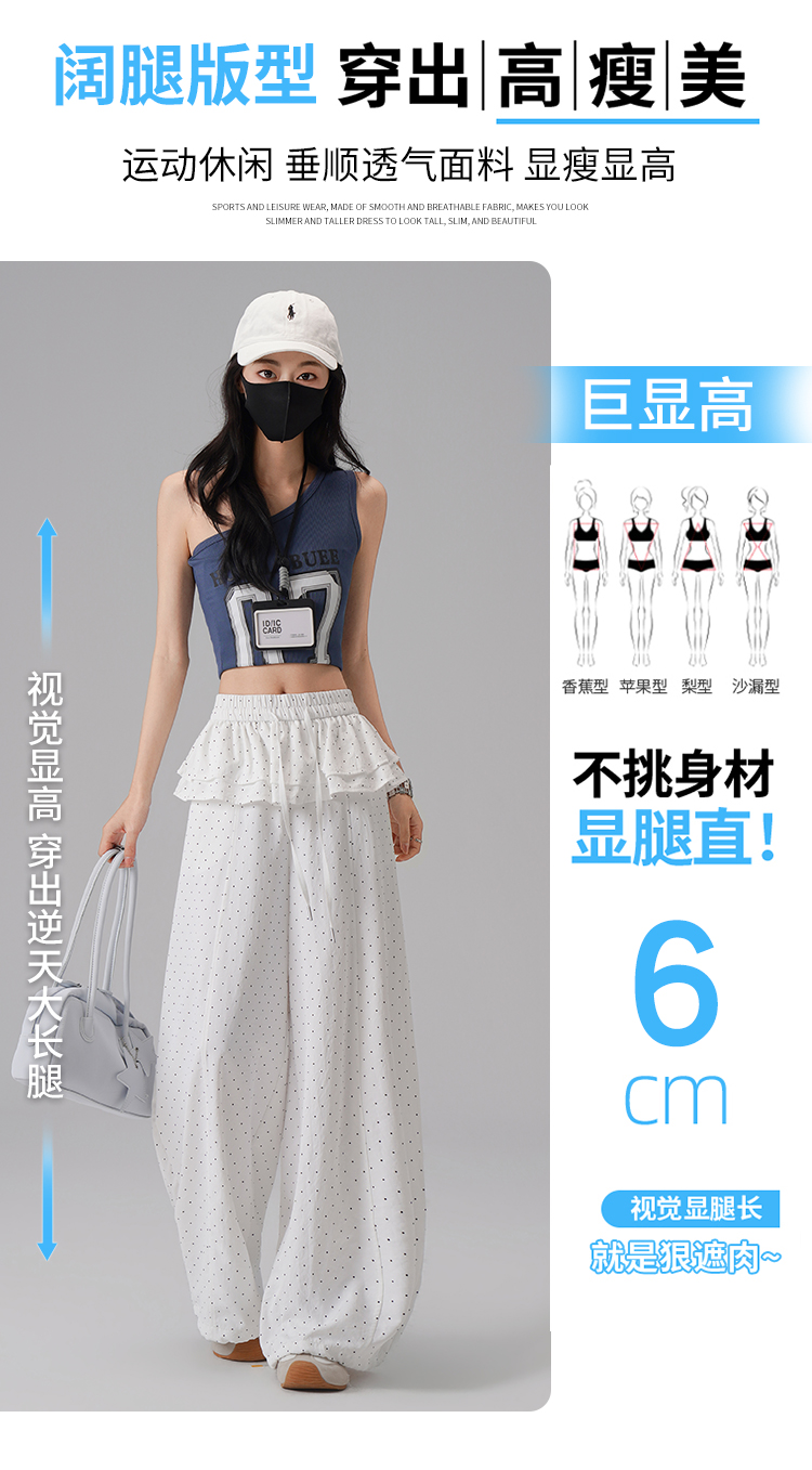 페이크 레이어드 방귀 커튼 도트 무늬 와이드 레깅스 바지 여름 얇은 스타일 2026 새로운 하이웨이스트 슬림해 보이는 루즈핏 도루 센스 바닥 청소 바지