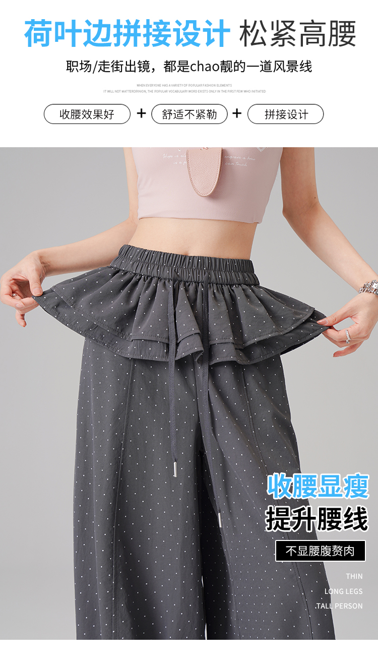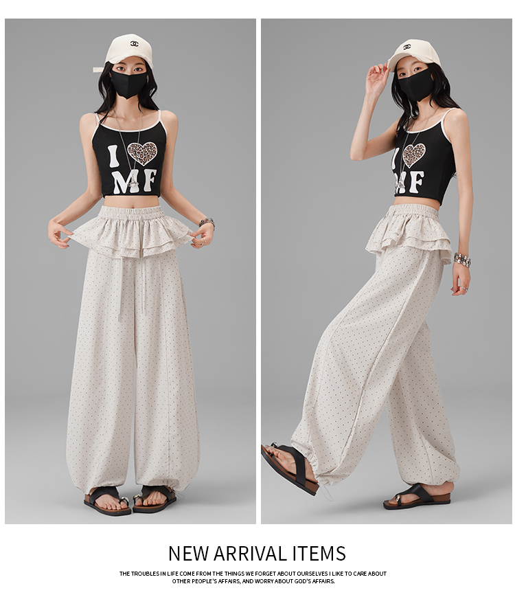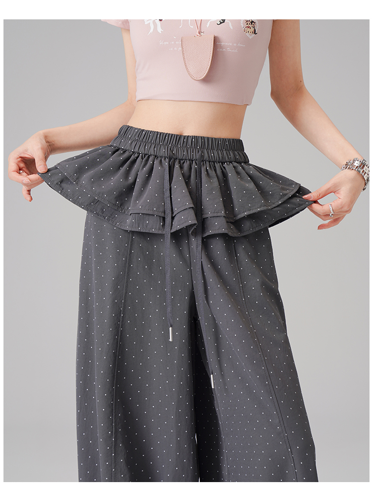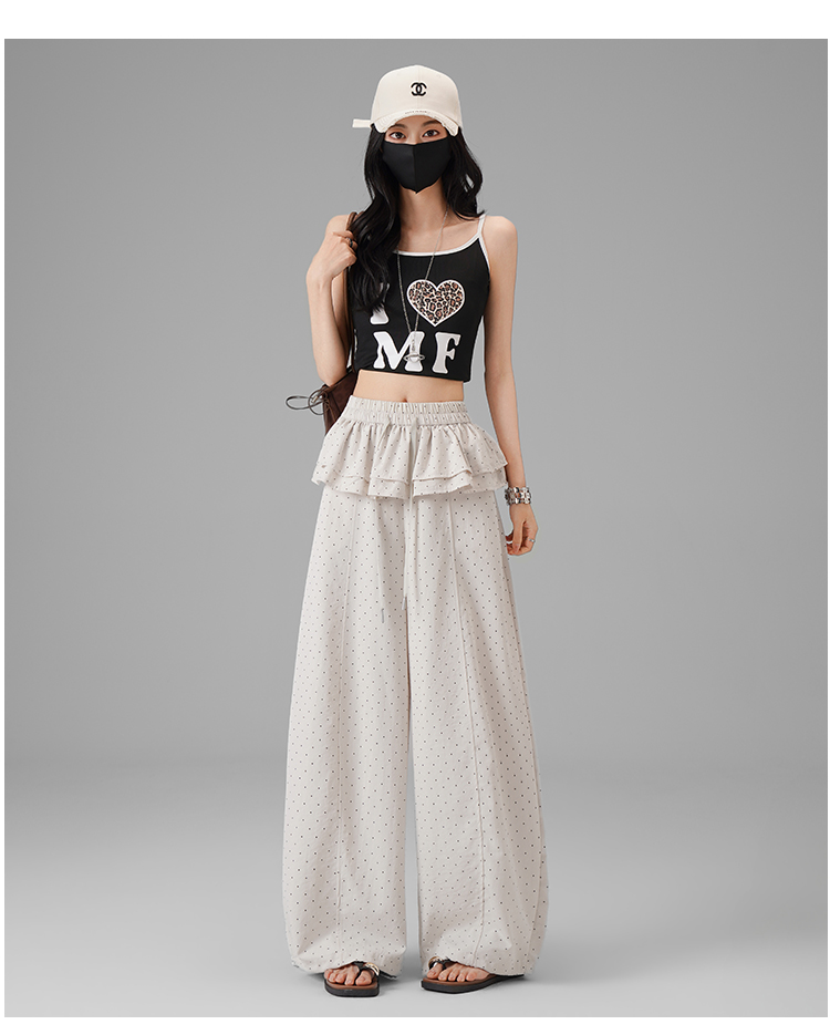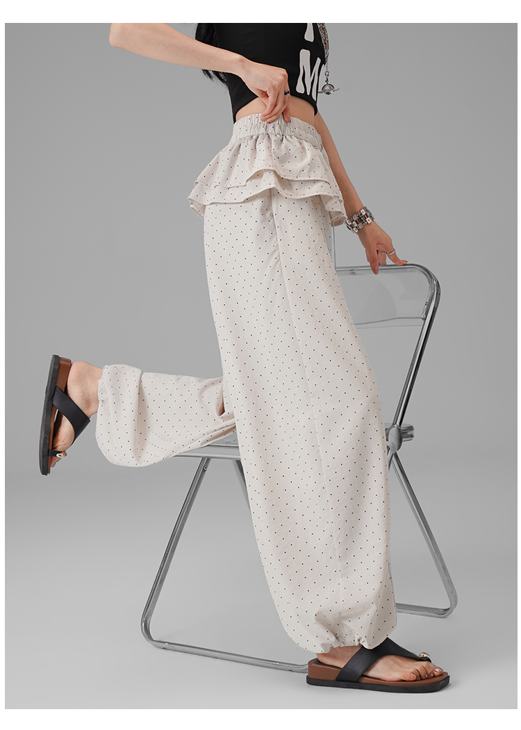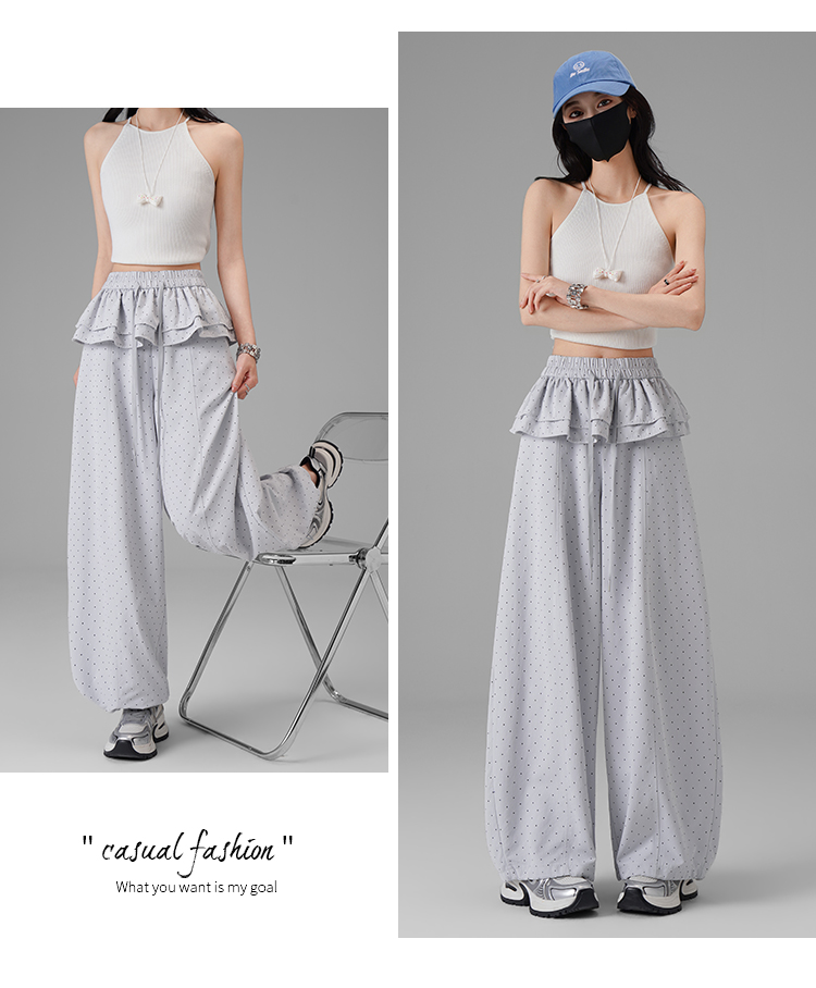 페이크 레이어드 방귀 커튼 도트 무늬 와이드 레깅스 바지 여름 얇은 스타일 2026 새로운 하이웨이스트 슬림해 보이는 루즈핏 도루 센스 바닥 청소 바지