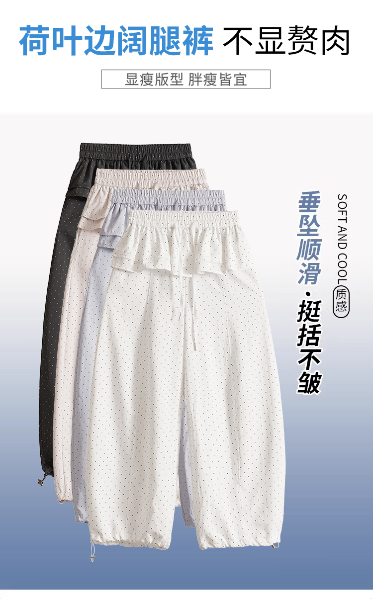 2026 여름 일본식 루즈핏 주간 실크 워시 물 면 풍선 바지 도루 센스 얇은 스타일 슬림해 보이는 넓은 다리 9 포인트 바지