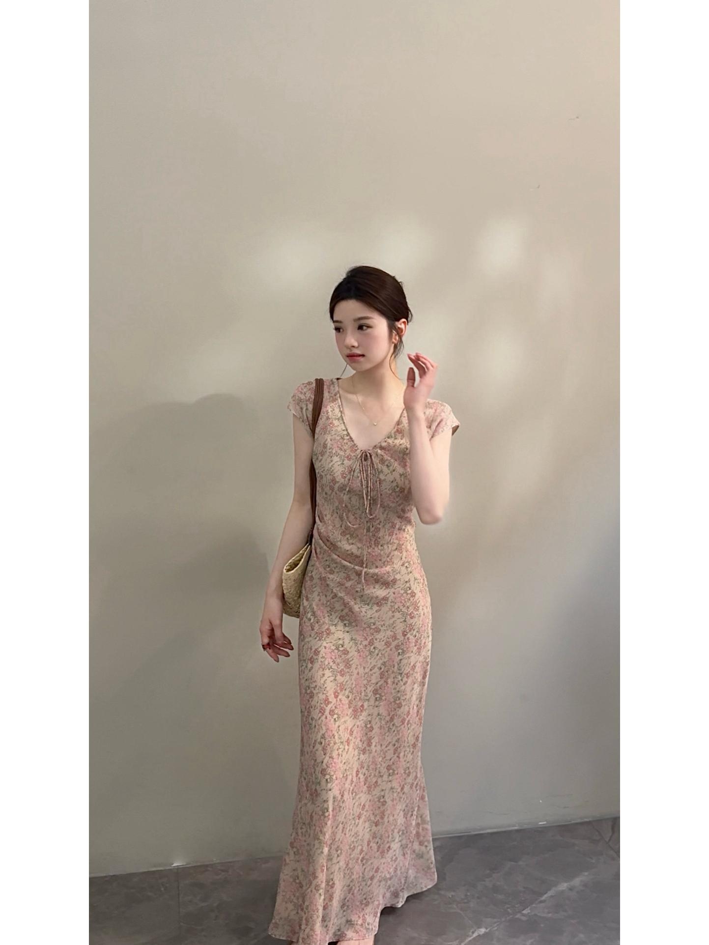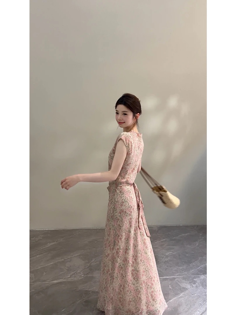 jijinqi 패션 캐주얼 바람 풀오버 섹션 민소매 허리 수축 봄 여름 일반 드레스