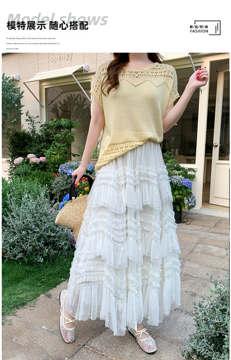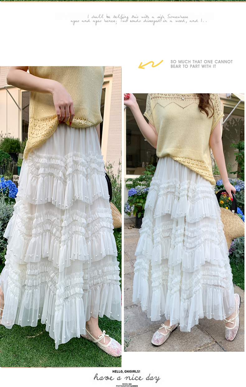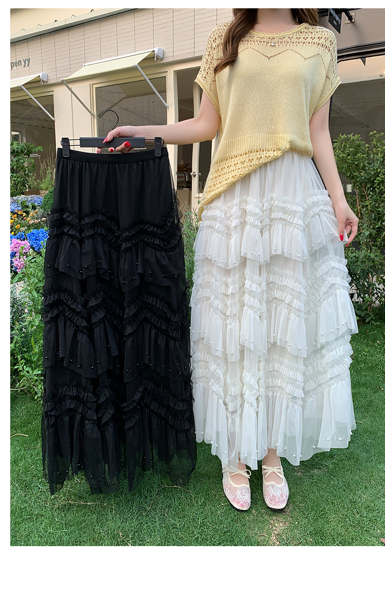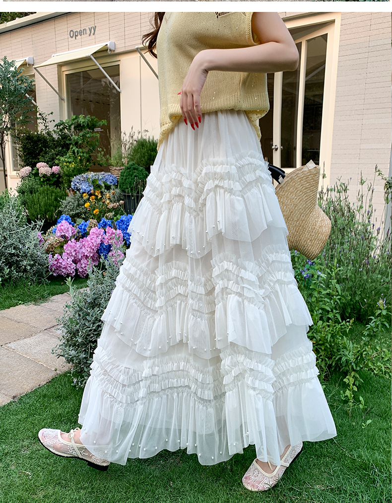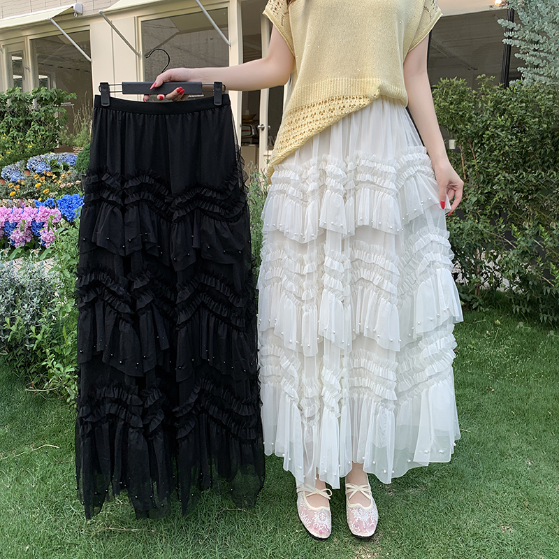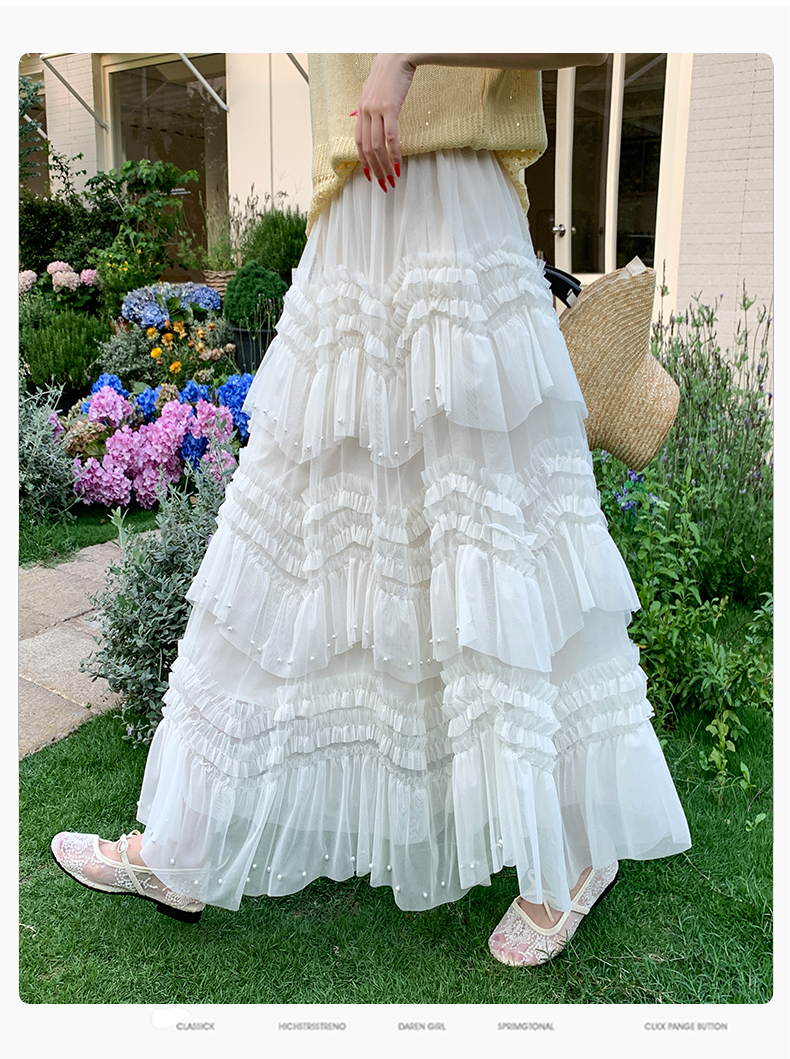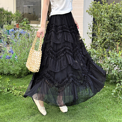 실사 무거운 작업 비즈 박기 여러 단계 프릴 망사 케이크 반신 스커트 달콤함 슈퍼 요정 도루 가을 센스 큰 진자 거즈 스커트