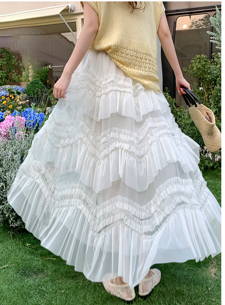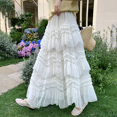 실사 낭만주의 바람 다중 레이어 프릴 케이크 반신 스커트 여성 하이웨이스트 슬림해 보이는 도루 센스 한 마디 큰 진자 슈퍼 요정 롱 스커트