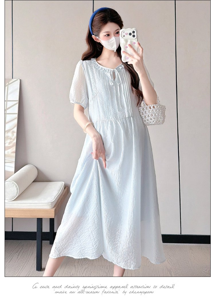 새로운 핑크색 광장 칼라 꽃 홀로우 아웃 임산부 드레스 루즈핏 슬림해 보이는 부드러운 바람을 피우다 롱 코트 드레스