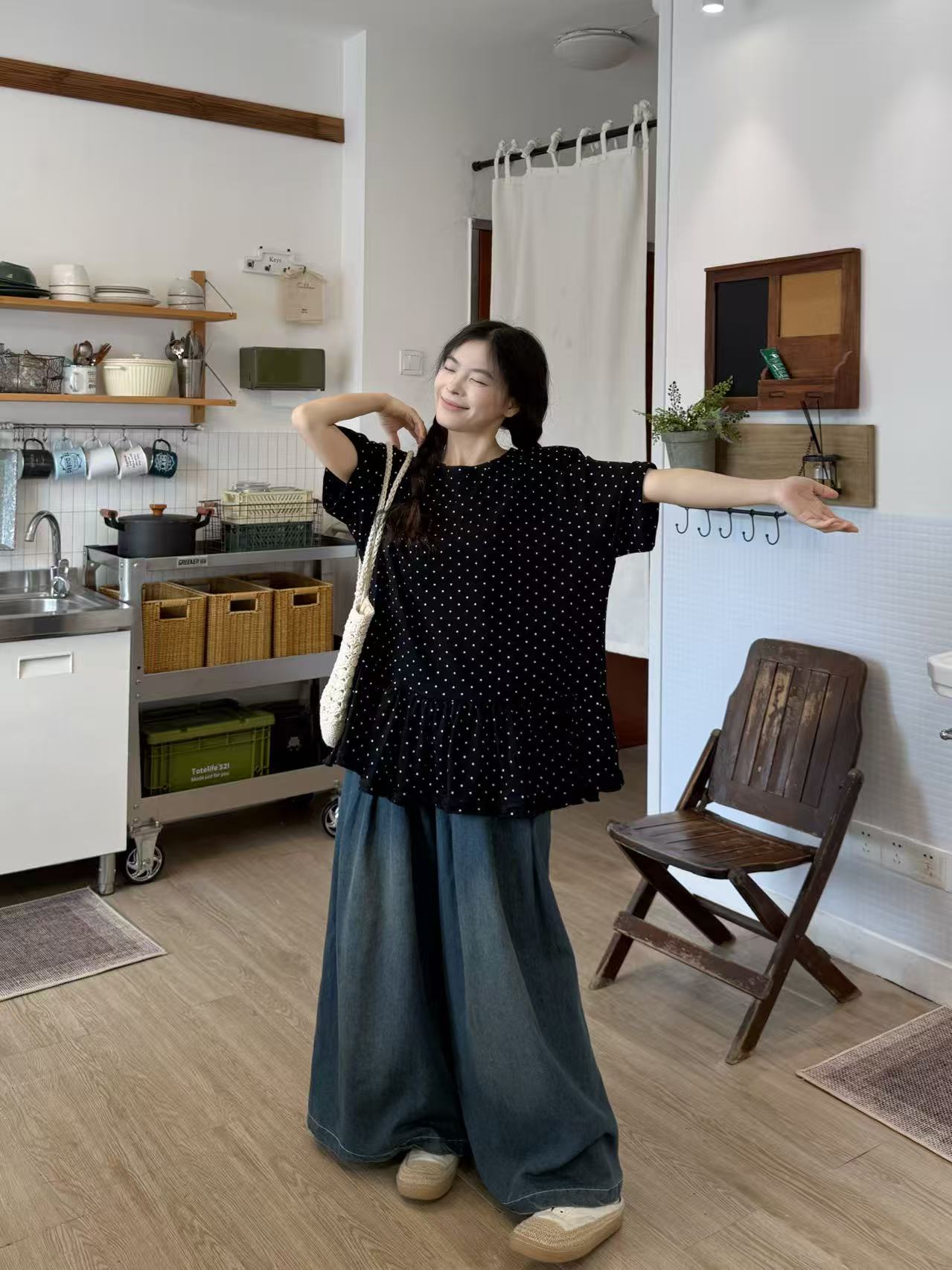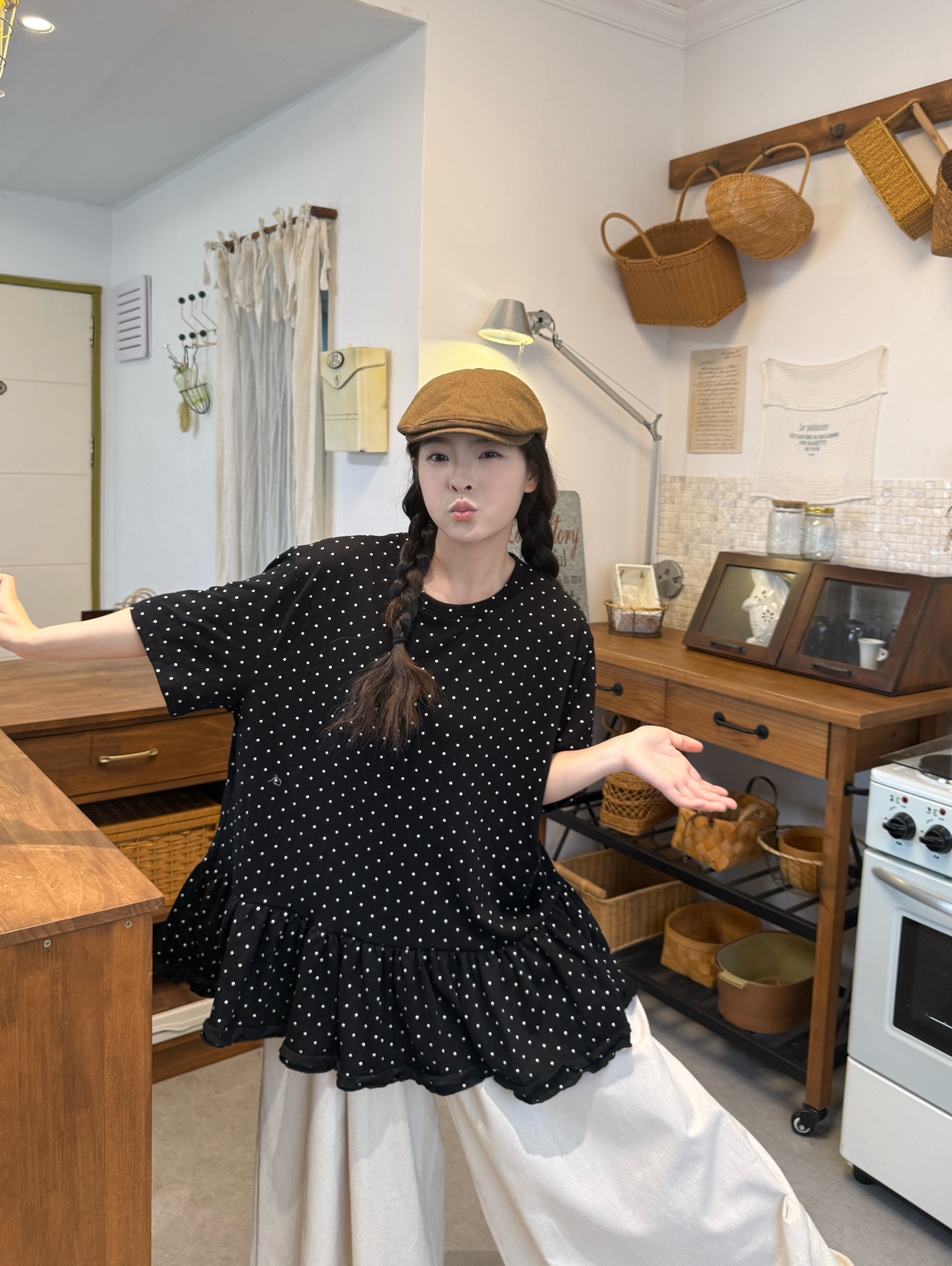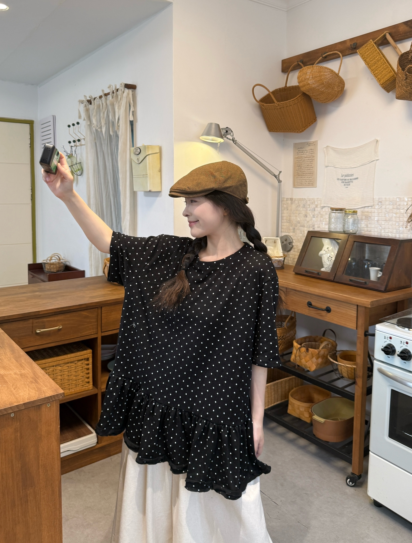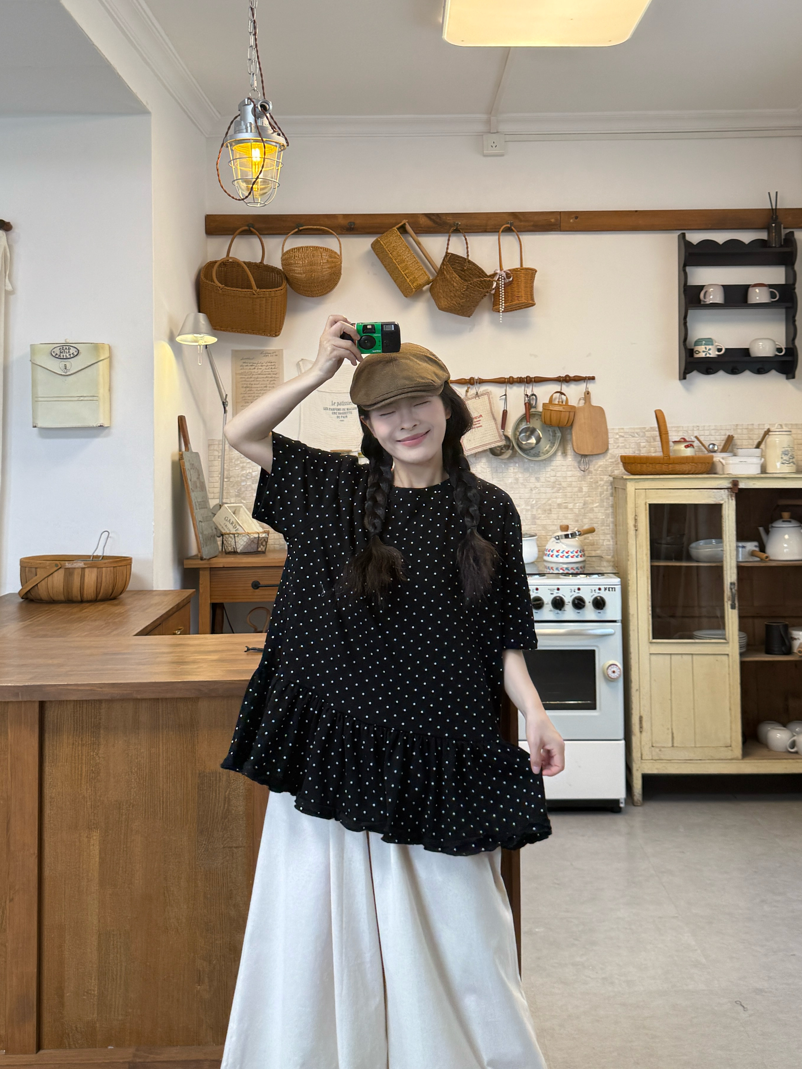 실사 선물 물품 다용도 루즈핏 도트 무늬 니트 반팔 티셔츠