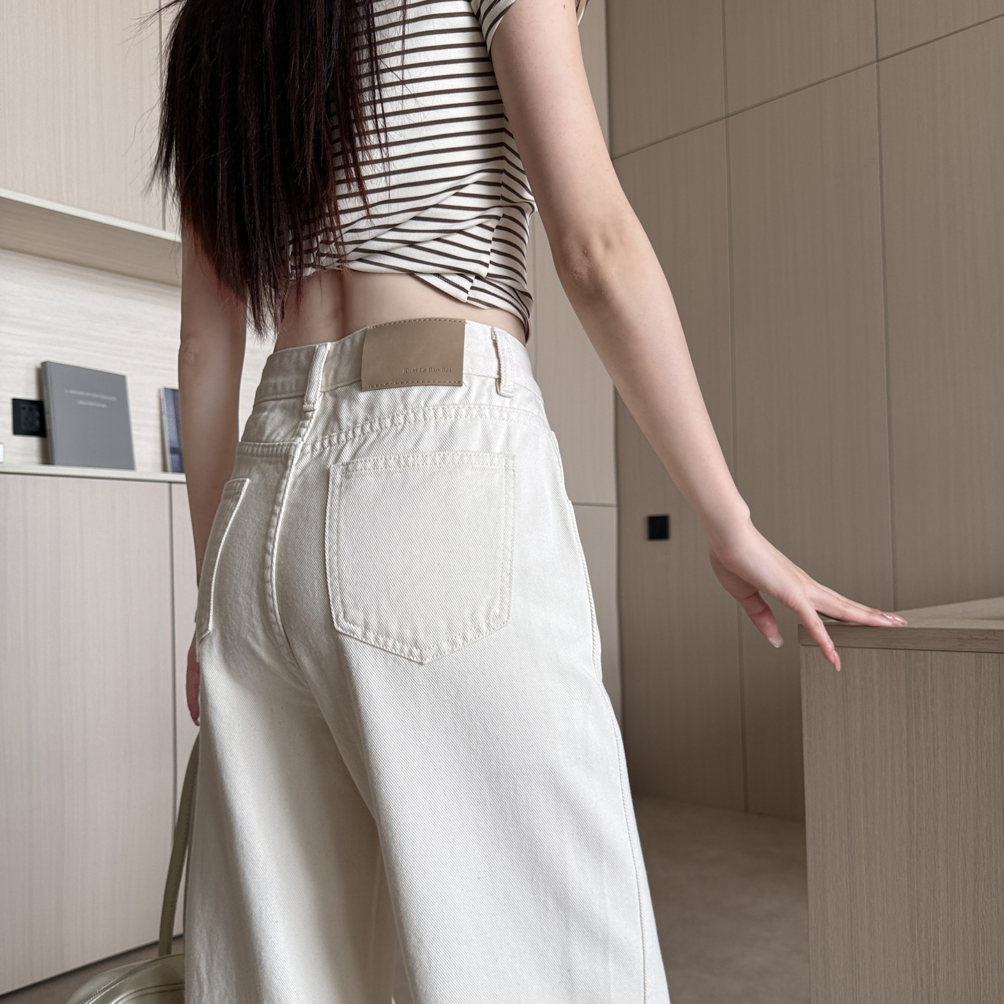 작은 키 베이지 색 모통이 칼 청바지 여성 2026 여름 하이웨이스트 스트레이트 와이드 레그 팬츠