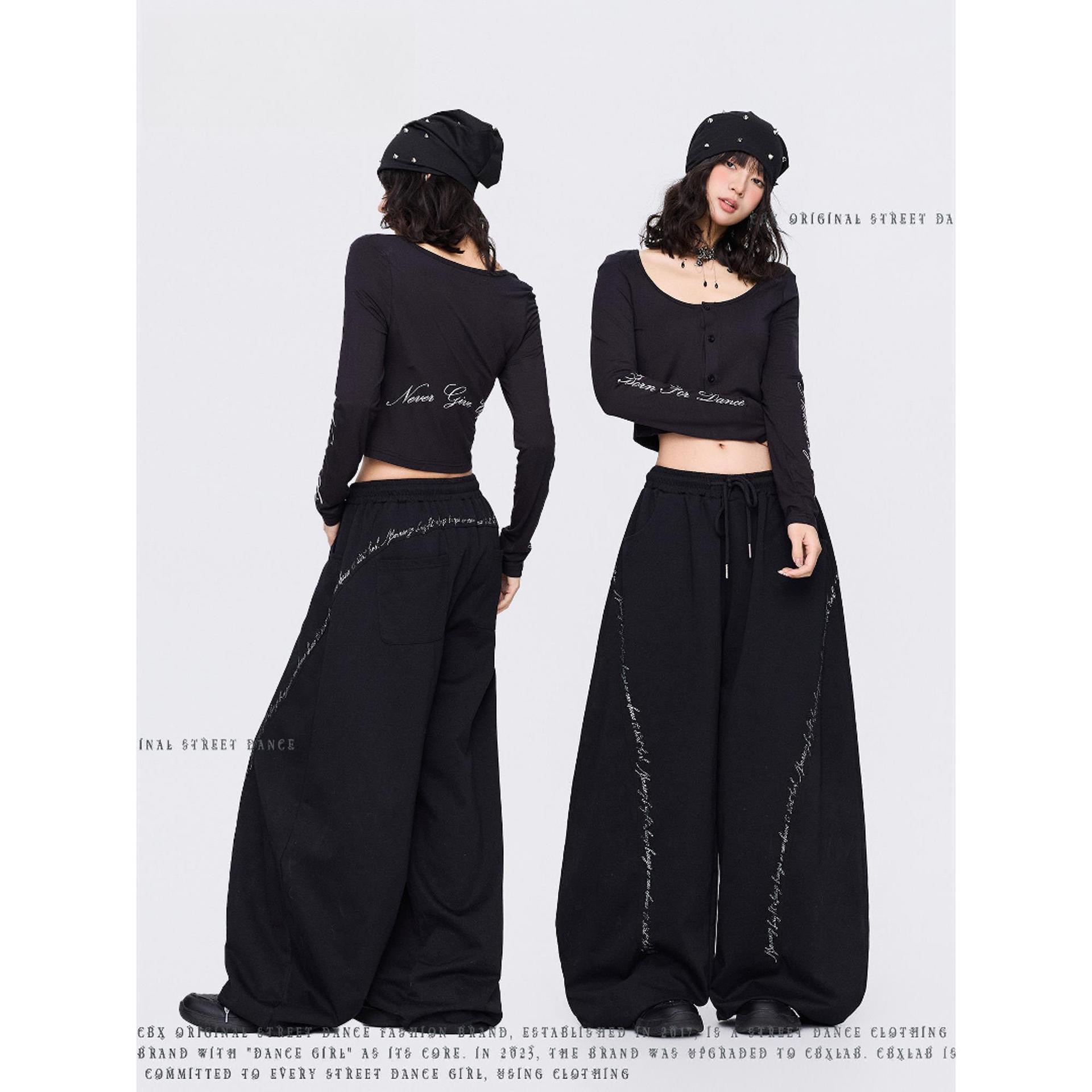 스트리트 댄스 조수 브랜드 검정색 얼룩덜룩 한 뜨거운 은 글꼴 개성 운동 바지 아메리칸 거리 춤추기 캐주얼 바지 트렌디 높음 거리