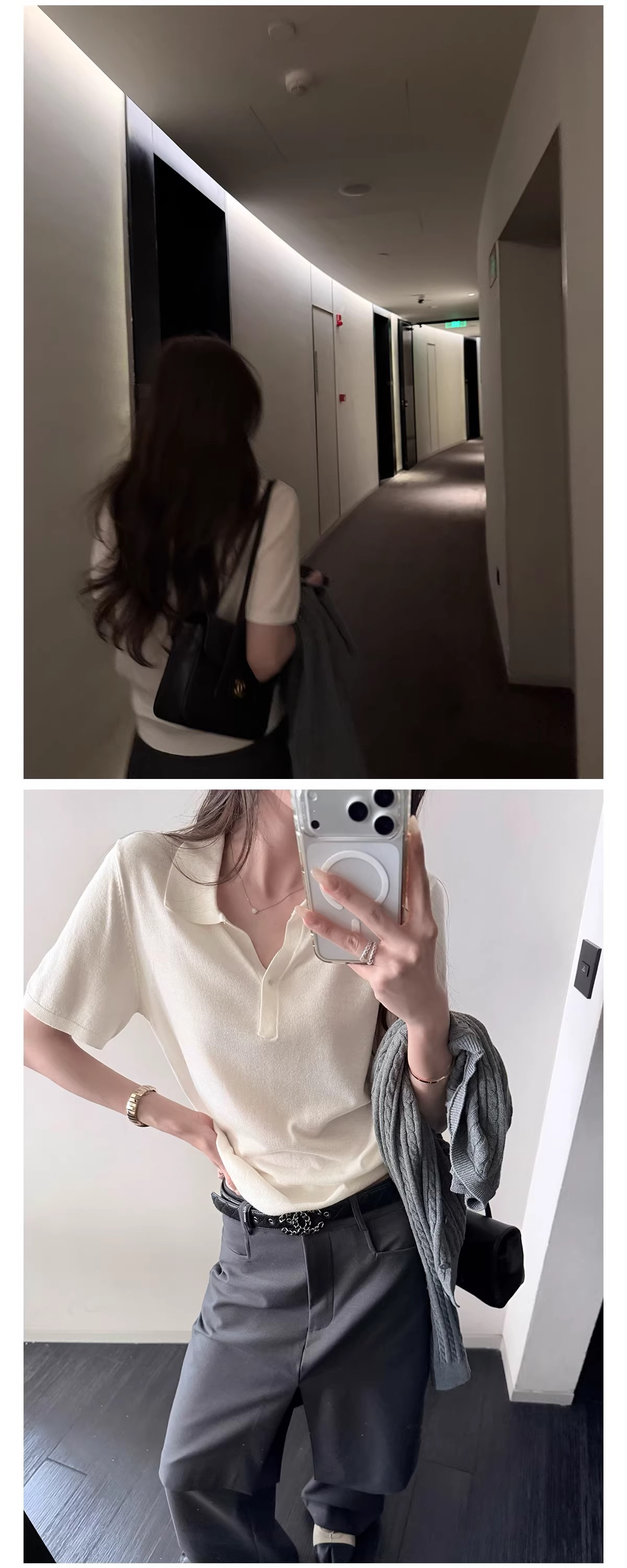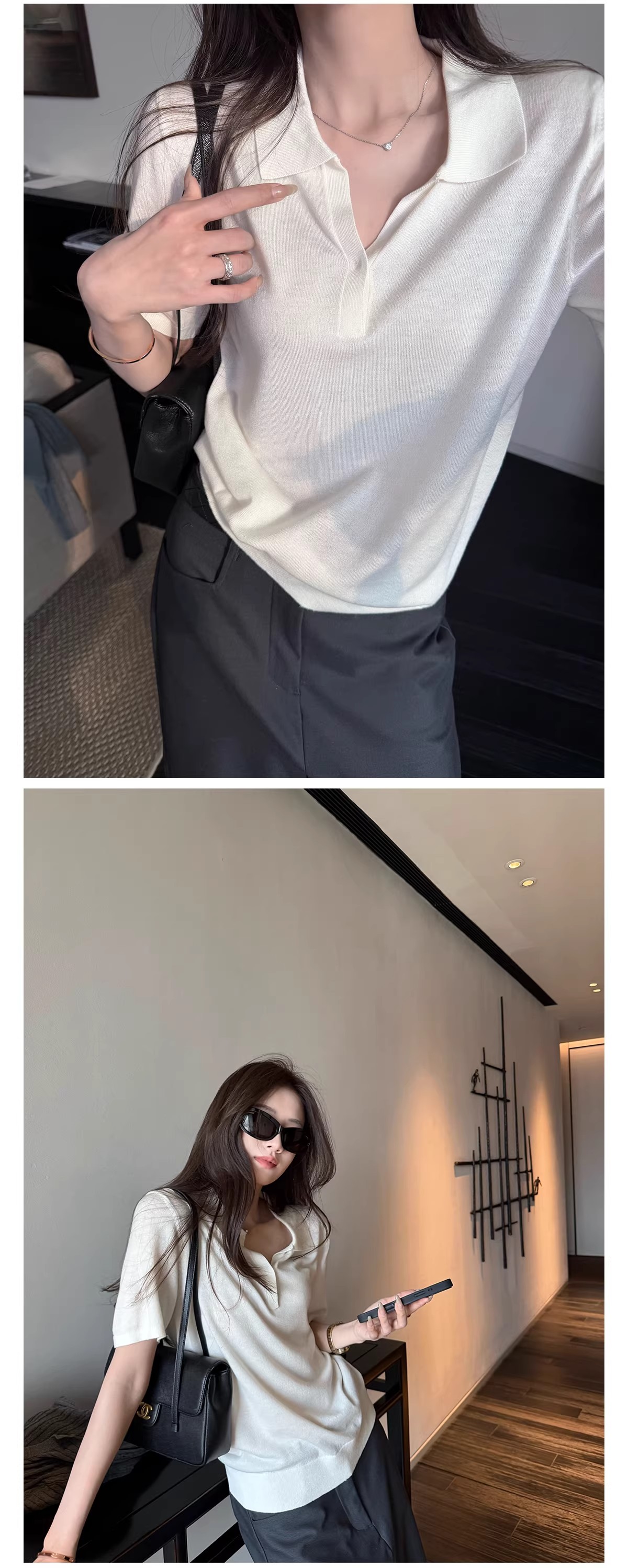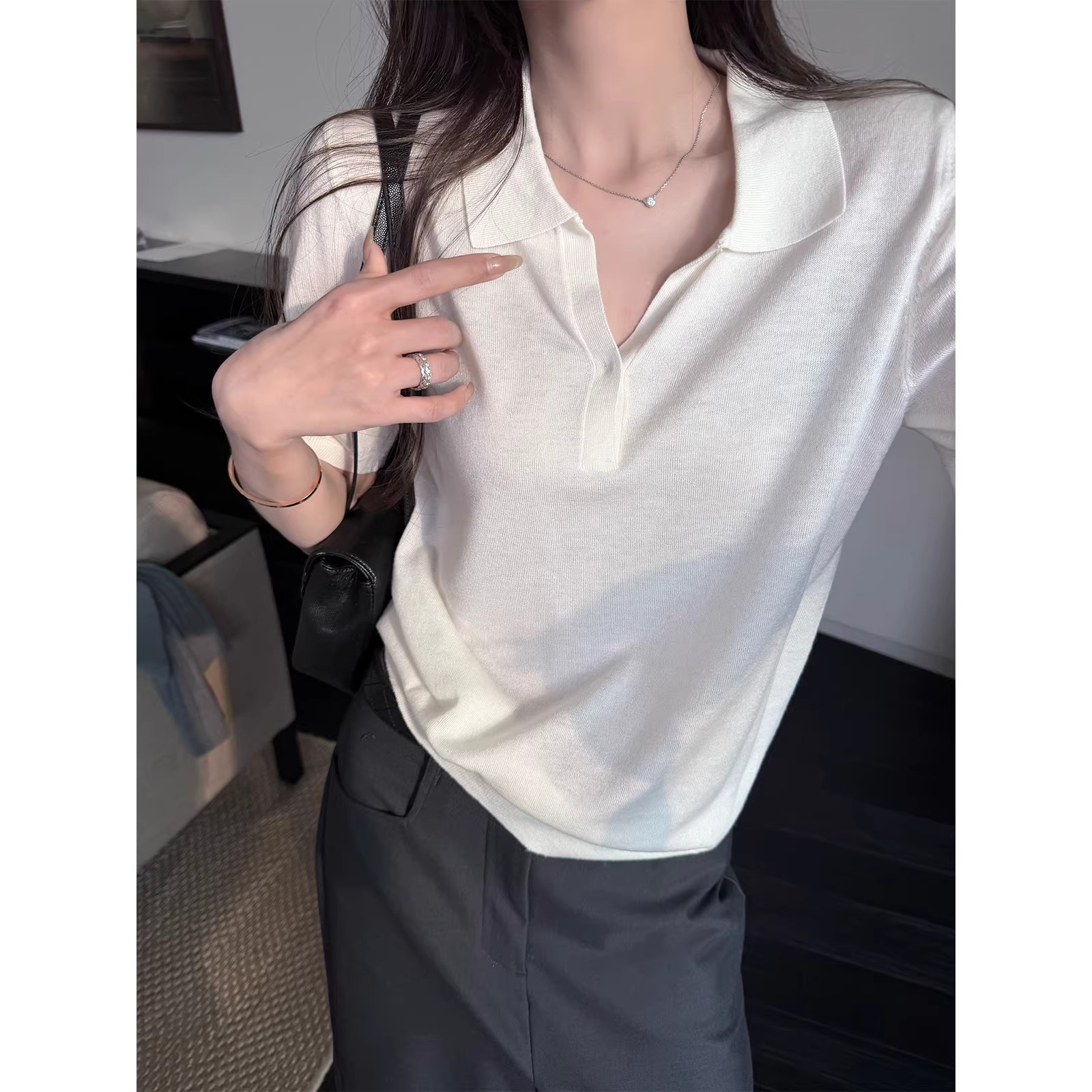 책 가스 30 양모 오래된 돈 바람 POLO 칼라 익스트림 제인 상쾌 품격 니트 스웨터 여성 봄