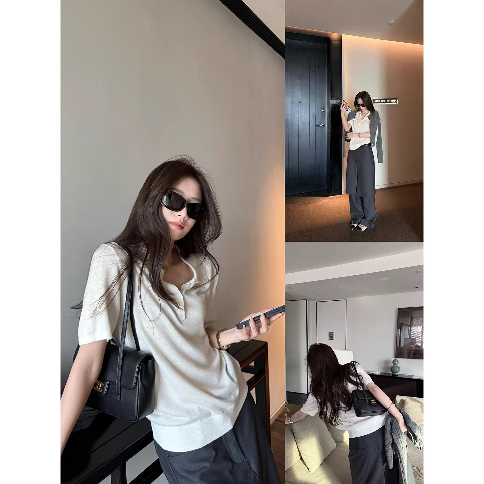 프랑스식 회색 V넥 민소매 캐미솔 여름 디자인 센스 작은 대중 아름다운 외출용 인사이드 가져 가라. 어깨 맨위
