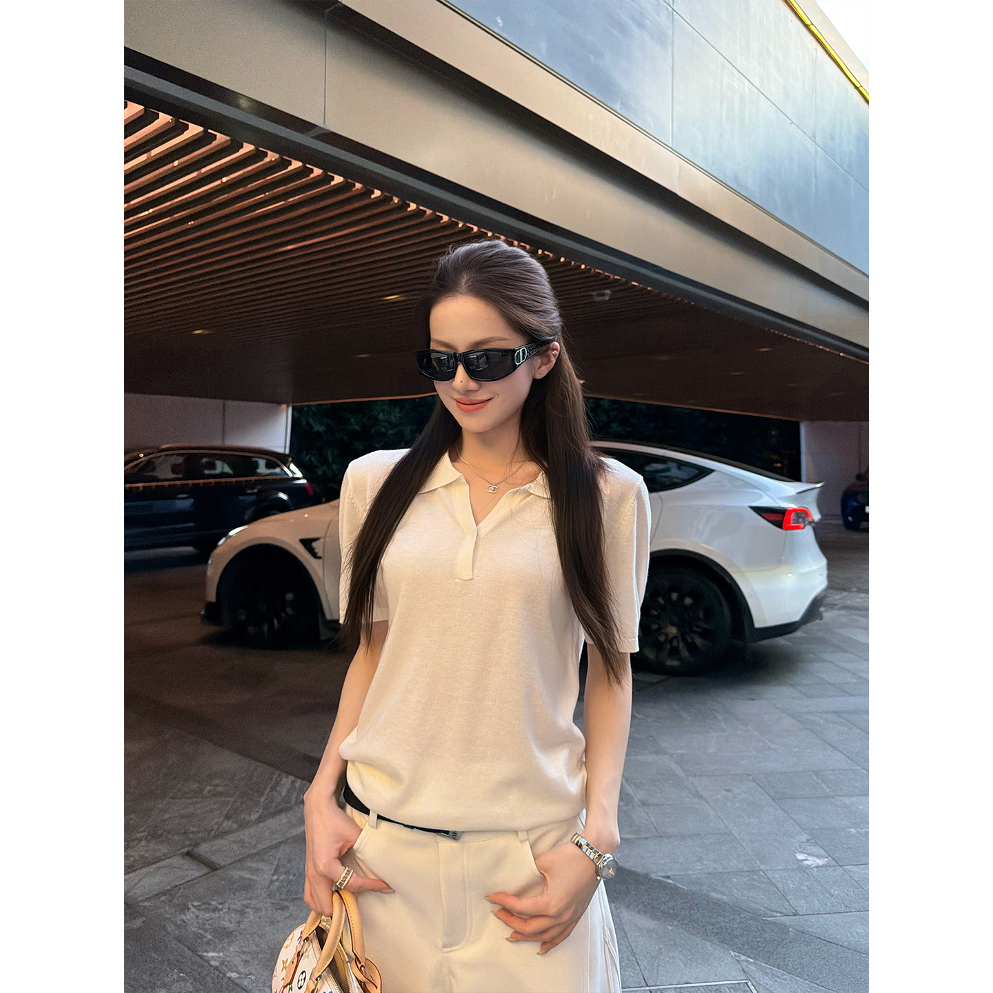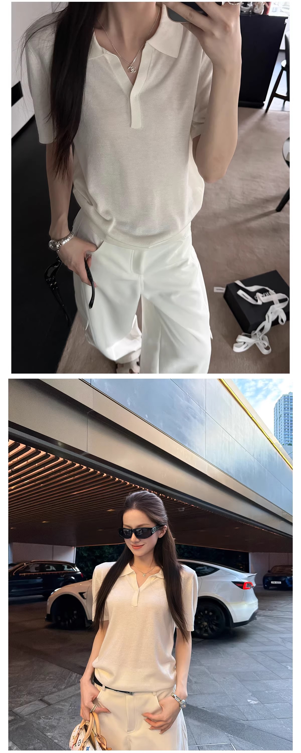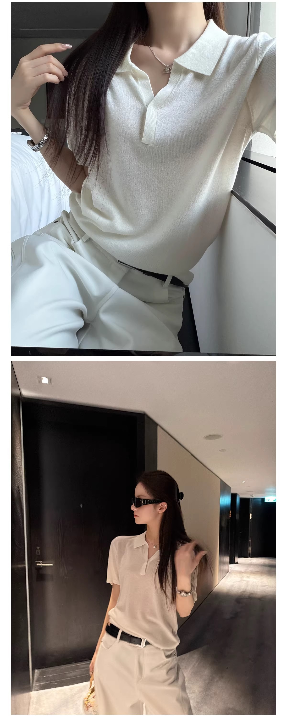 all in 여름 2026 새로운 한 부서 디자인 센스 행침 목 페이크 레이어드 니트 스웨터 여성 배색 몸매 가꾸기 반팔 맨위