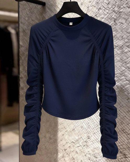 한 부서 라운드 넥 망사 나팔 소매 레이스 셔츠 여성 2026 겨울 새로운 몸매 가꾸기 슬림해 보이는 맨위