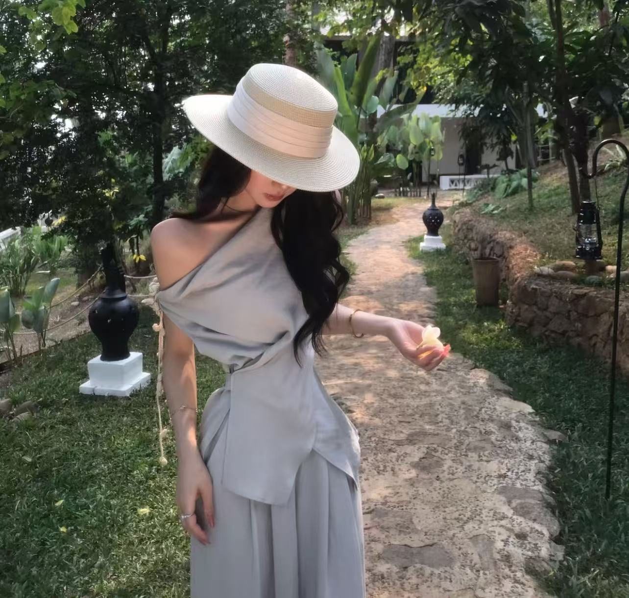 디자인 센스 레이스 조각 모자 포함 맨위 우아한 반신 치마 세트