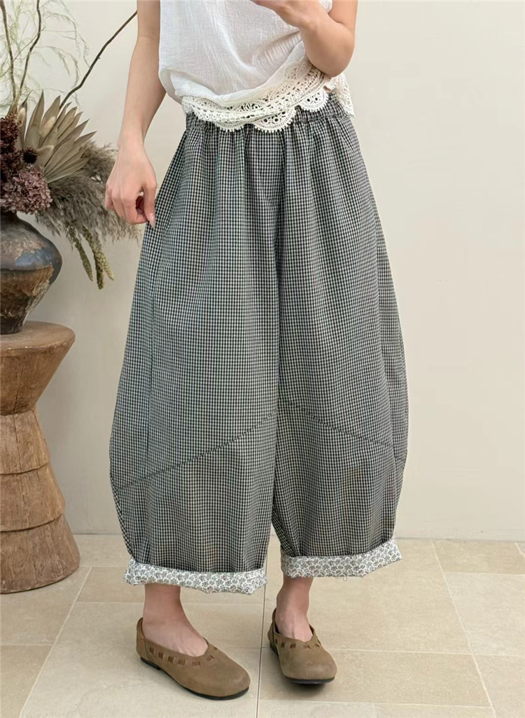 일본식 레트로 프린트 배기 바지 봄 여름 섹션 루즈핏 캐주얼 다용도 9 포인트 풍선 바지 모통이 칼 바지