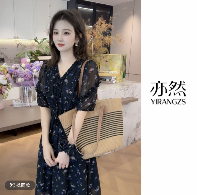 그 반대 봄 여름 새로운 부드러운 바람 도트 무늬 꽃무늬 중간 소매 V넥 허리 수축 중간 길이 슈퍼 요정 드레스