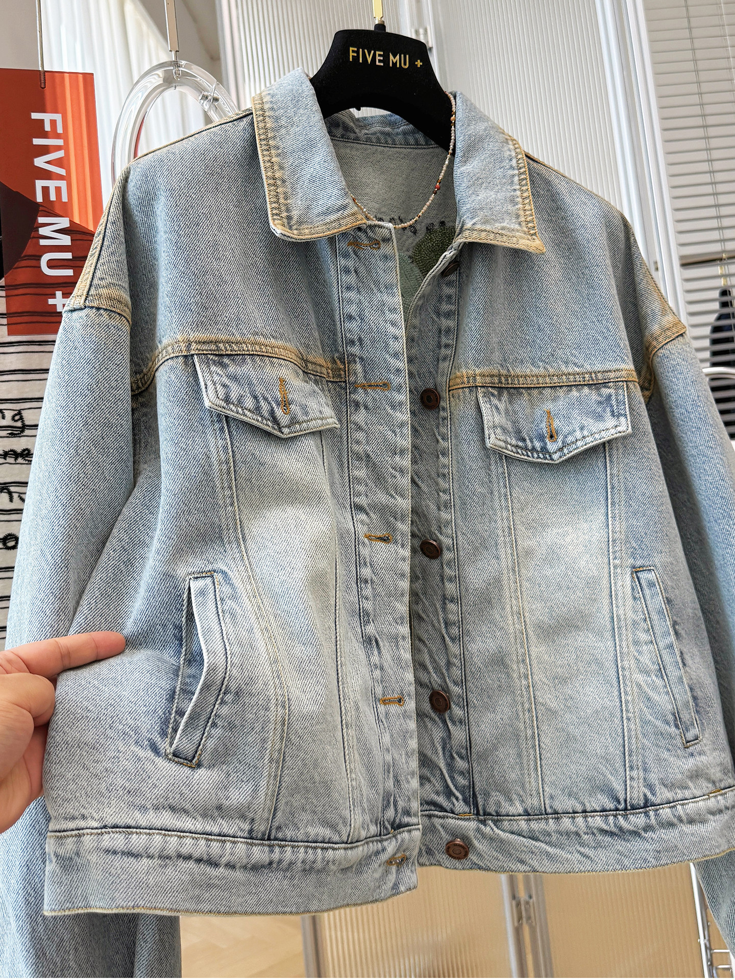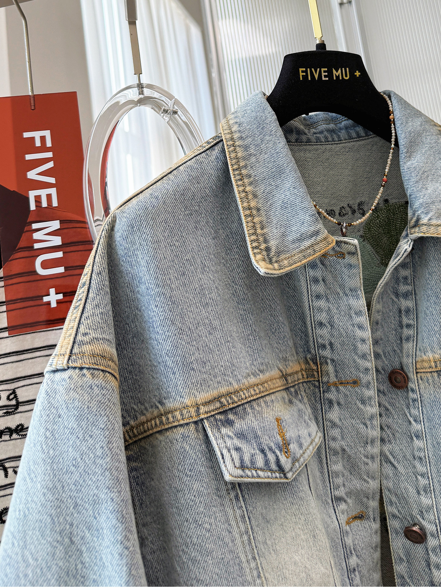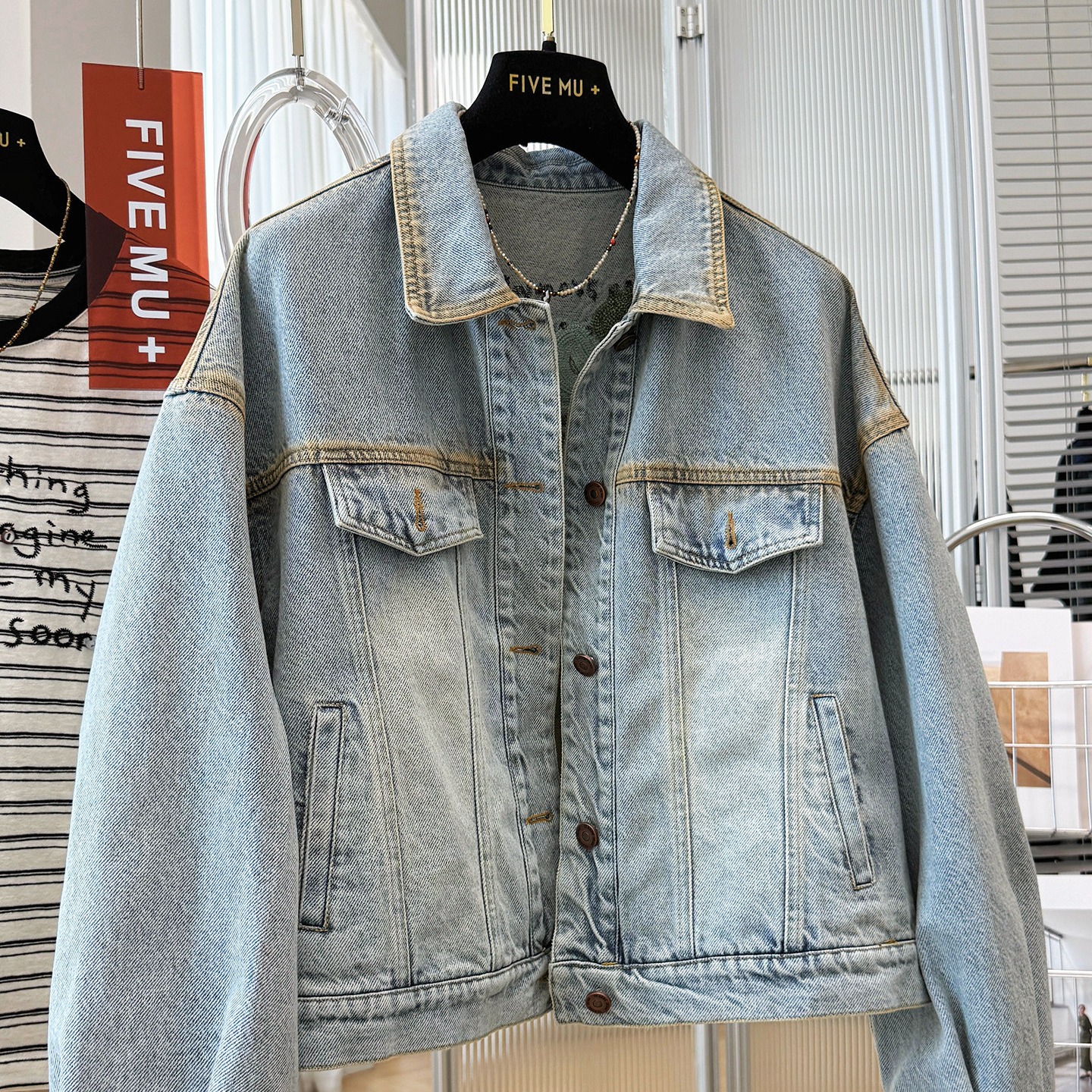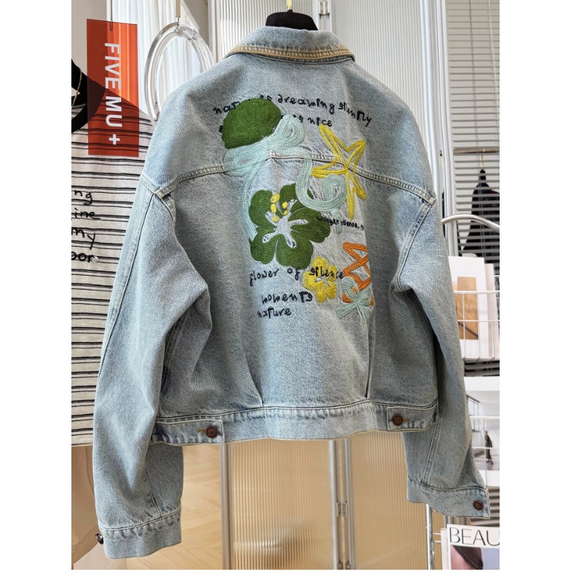 한국 2026 봄 새로운 복잡한 고대의 이름 가족 바람 자수 패션 한국 스타일 품격 데님 재킷 오래된 돈 바람 맨위