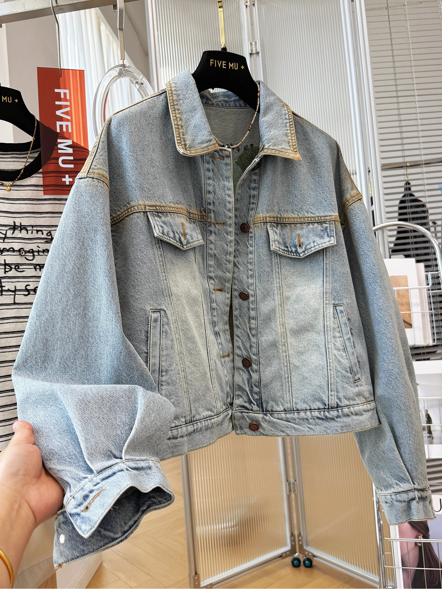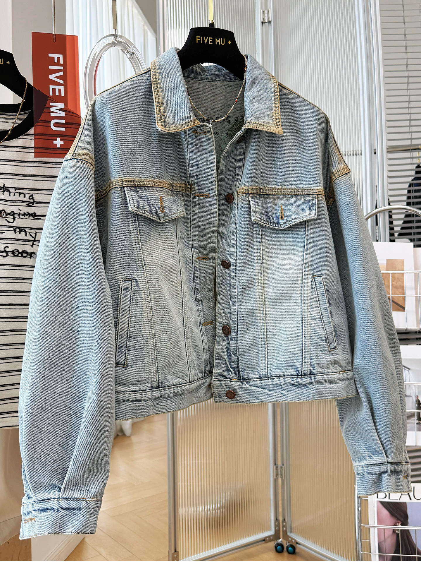 2026 봄 새로운 한국 스타일 레트로 비즈 박기 핫픽스 쇼트 스타일 데님 여성 코트 작은 키 다용도 슬림해 보이는 재킷
