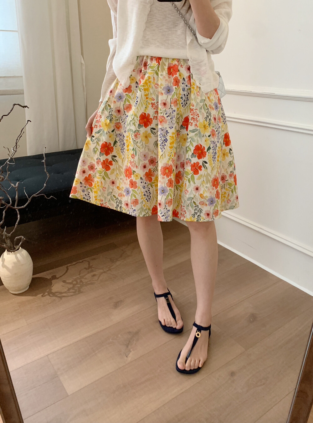 실사 한국 스타일 전원 바람 꽃무늬 밴딩 하이웨이스트 반신 스커트 26 여름 새로운 슬림해 보이는 다용도 중간 길이 A라인 스커트