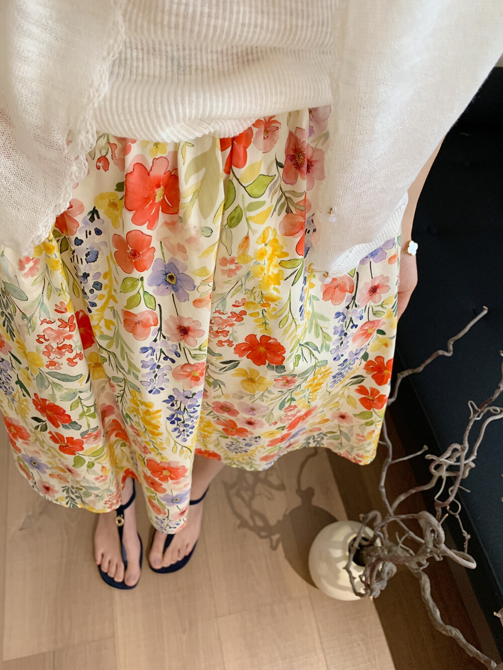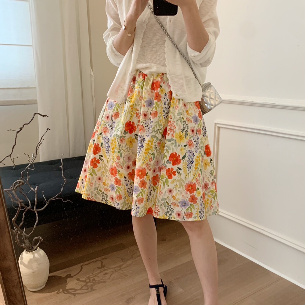 프랑스식 색상 꽃무늬 반신 스커트 여성 여름 새로운 작은 키 루즈핏 슬림해 보이는 한 마디 도파민 아름다운 롱 스커트