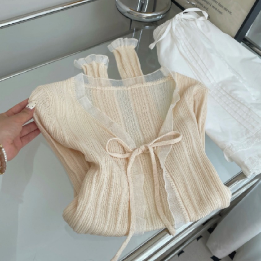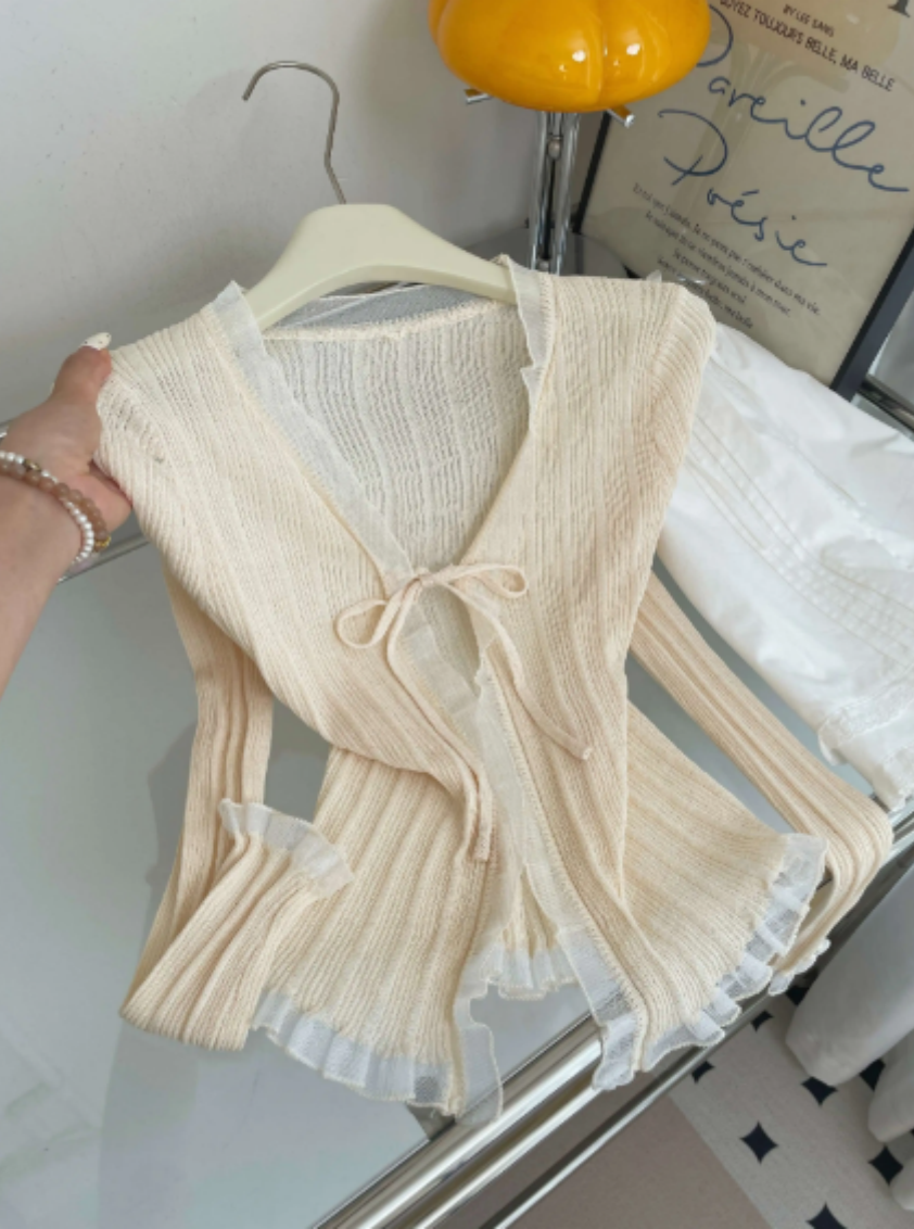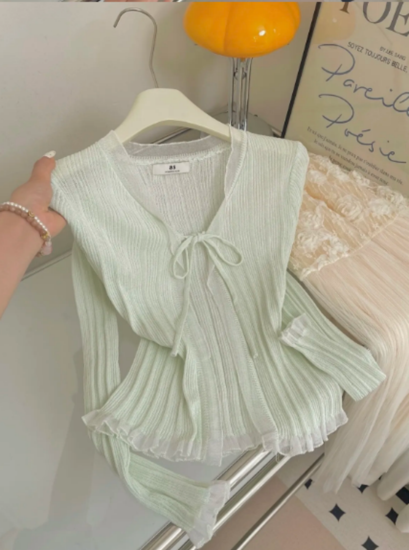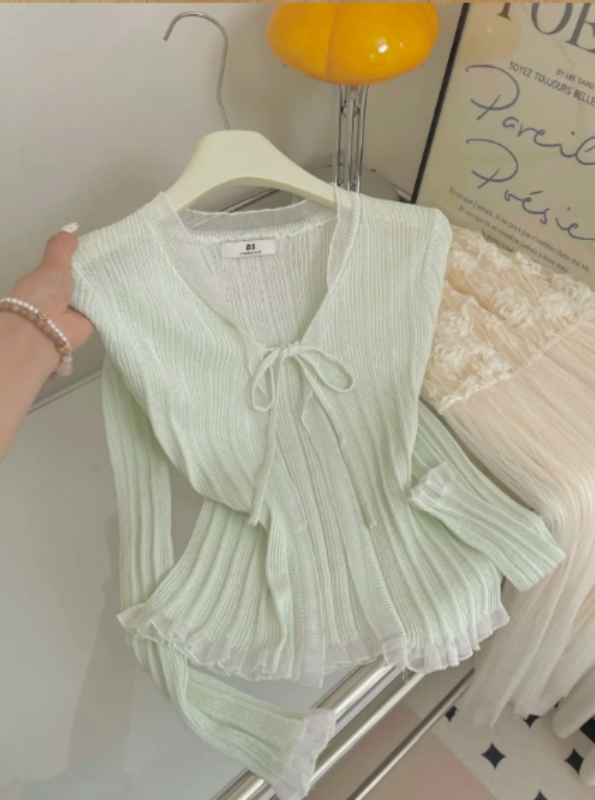 오리지널 디자인 한 부서 부드러운 바람 꽃무늬 니트 오픈 가디건 여성 여름 새로운 통기성 얇은 스타일 출퇴근 다용도