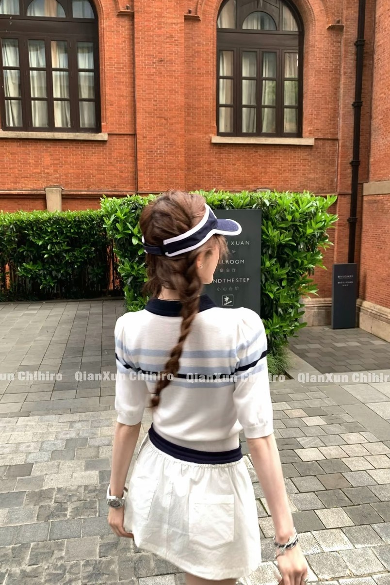 산소 부서 여고생 니트 여름 스트라이프 배색 디자인 반신 스커트 사전 여름 통기성 트렌드 펌프 로프 슬리브